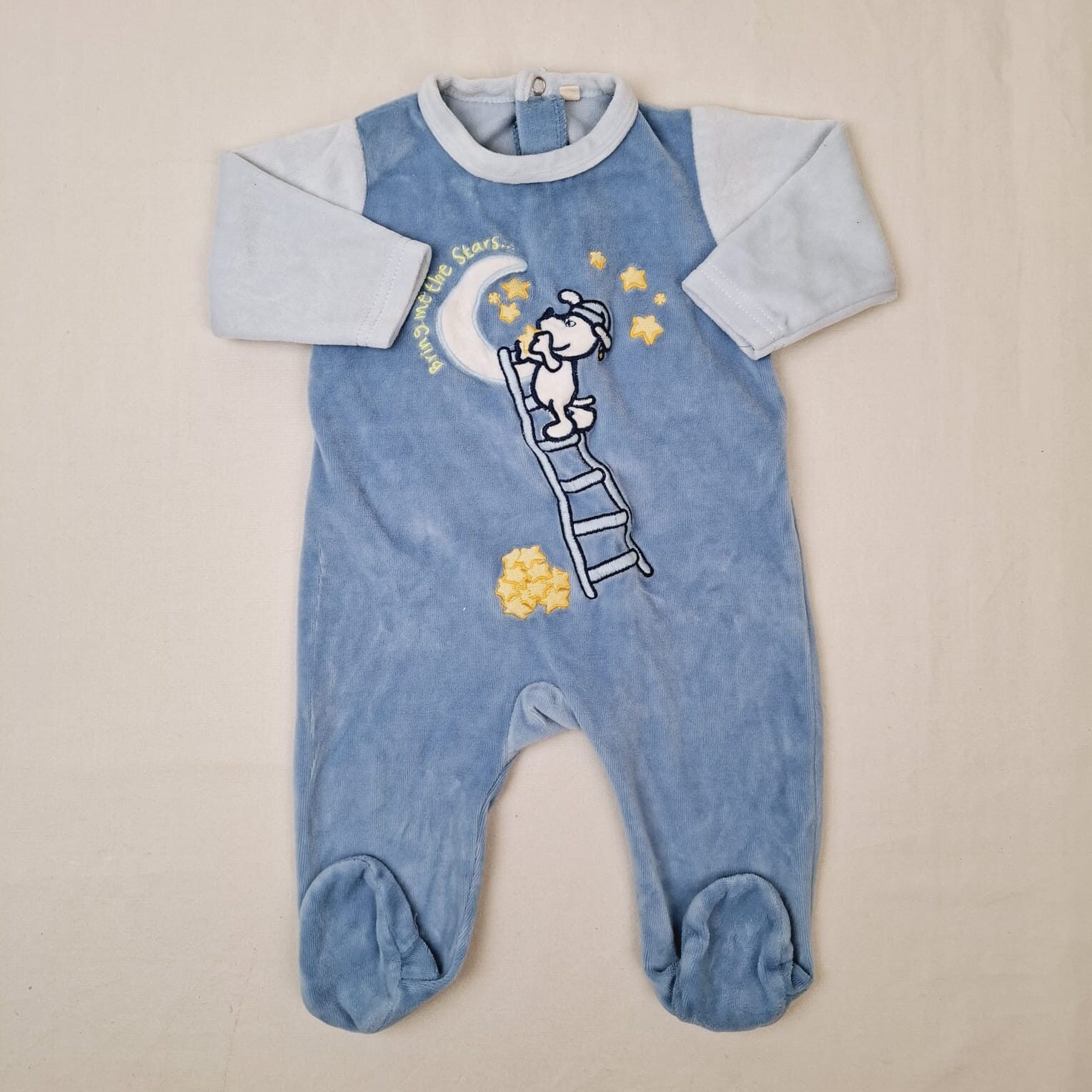 Autres commentaires : 25% polyester. Pyjama bleu en velours, motif chien et inscription « Bring me the Stars », col rond.