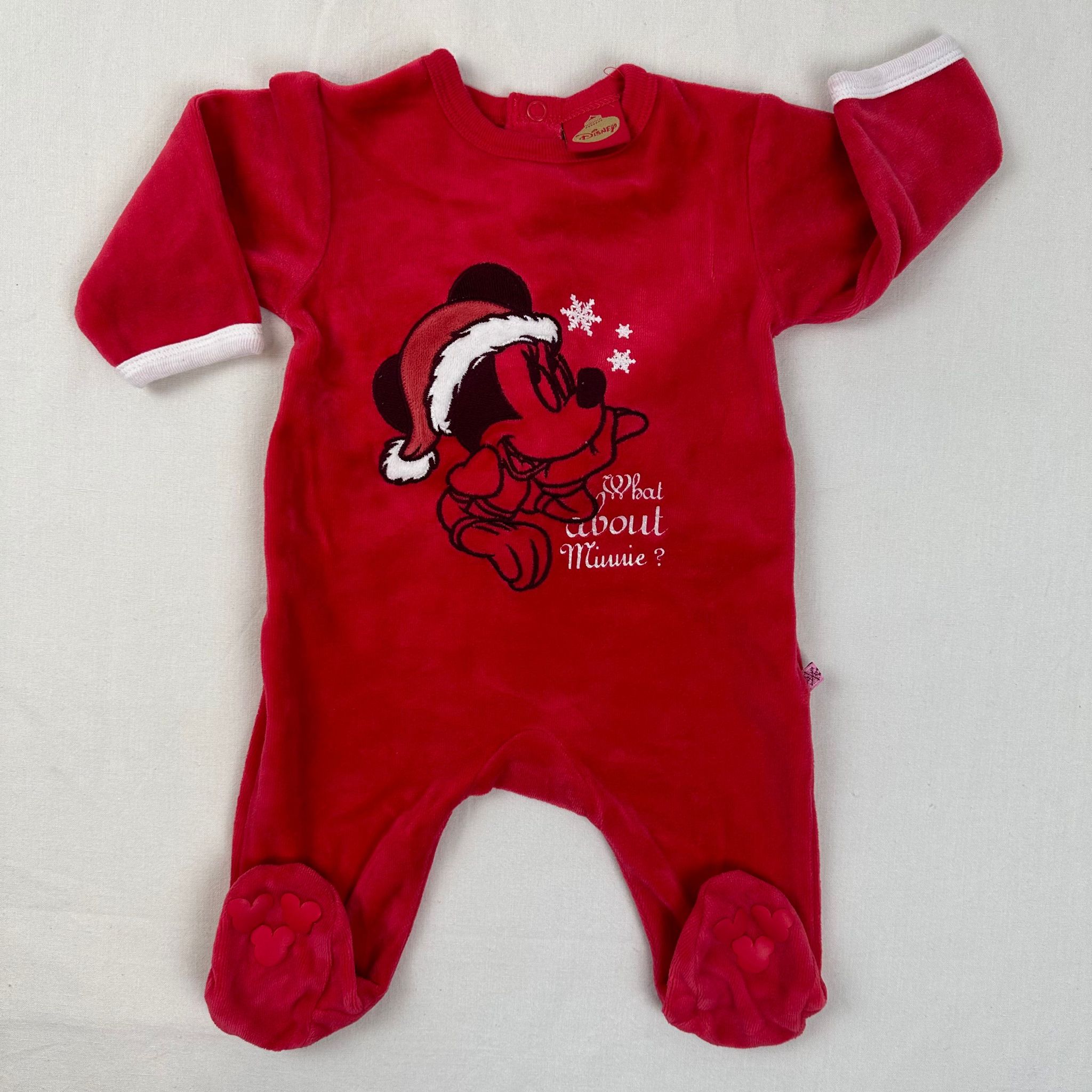 Autres commentaires : Pyjama une piéce rouge manches longues en velours avec motif centrale Minnie et une fermeture au dos par boutons pressions.