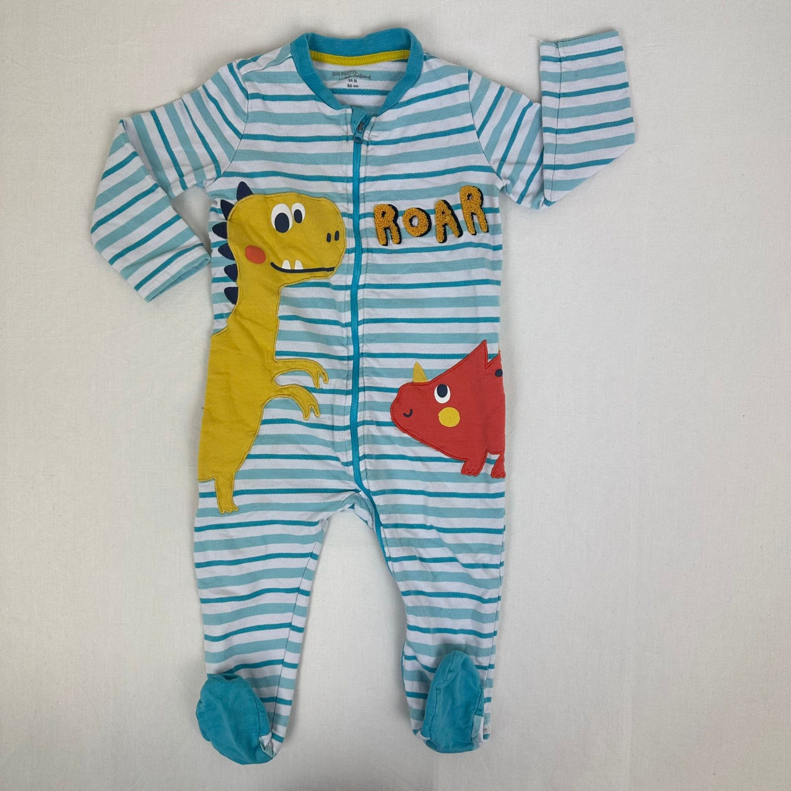 Autres commentaires : Pyjama une piéce bleu avec rayures blanches et motif un dragon et quelques bouloches d’usures.
