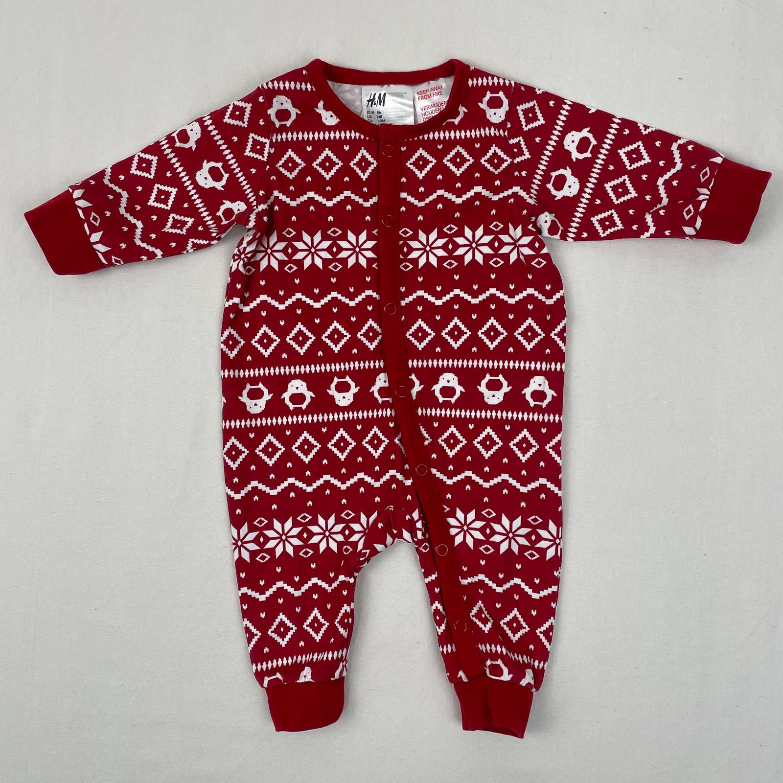 Autres commentaires : Pyjama rouge de Noël à manches longues, motif flocons blancs, fermeture à l’avant par boutons-pression.