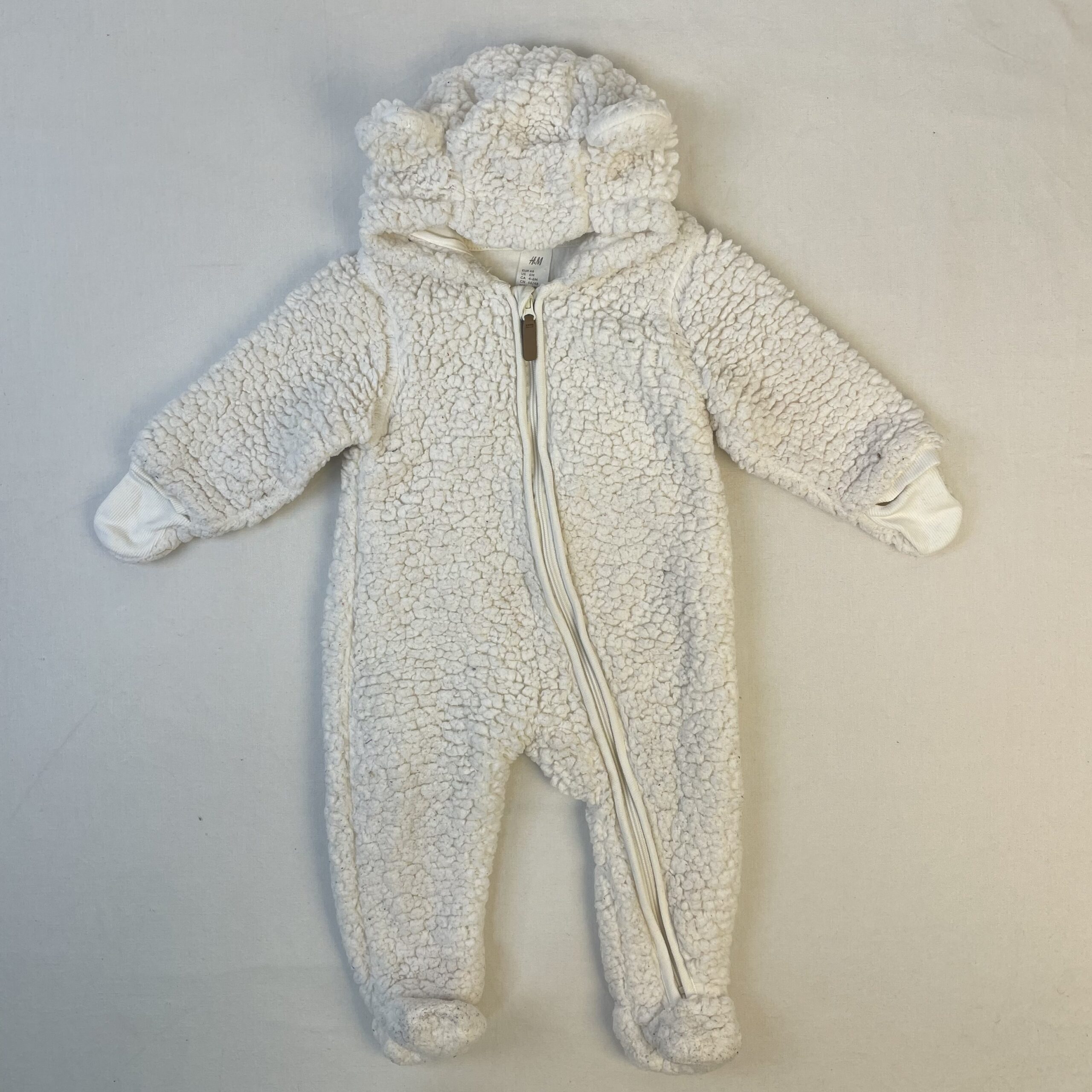 - Pyjama 1 pièce épais blanc crème, extérieur en polyester doux avec une capuche qui a des petites oreilles, l’intérieur est en 100% coton très doux. Pyjama parfait pour garder l’enfant au chaud.