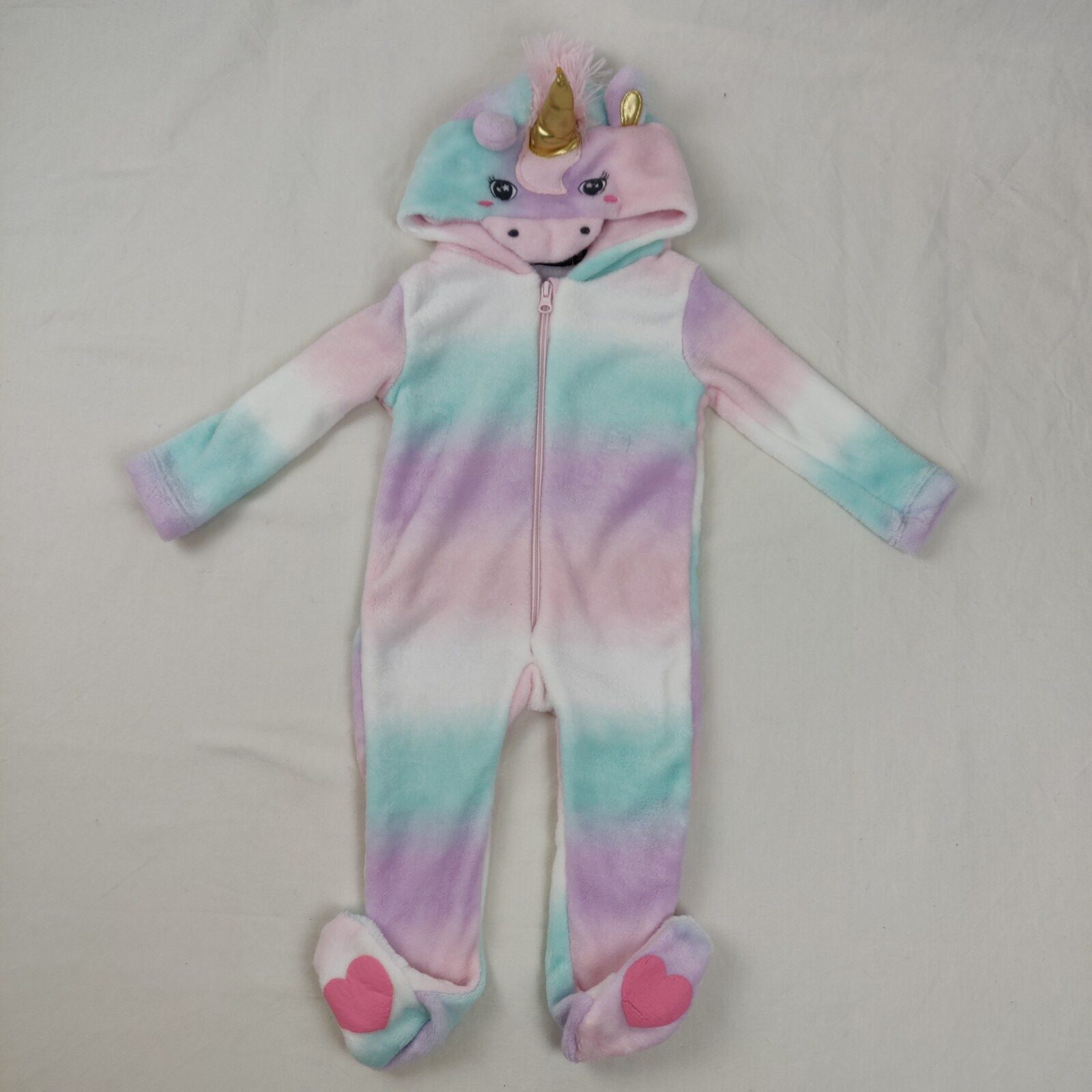 Autres commentaires : Pyjamas une piéce blanc, rose et violet manches longues en velours avec capuche et motif licorne.