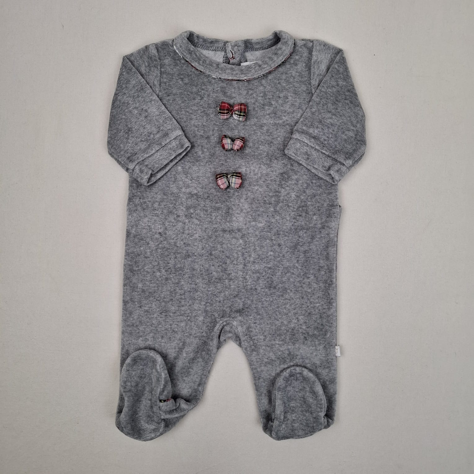 Autres commentaires : Pyjama 1 pièce gris Jacadi 3M, noeud papillon en relief à l’avant , fermeture boutons pressions arrière