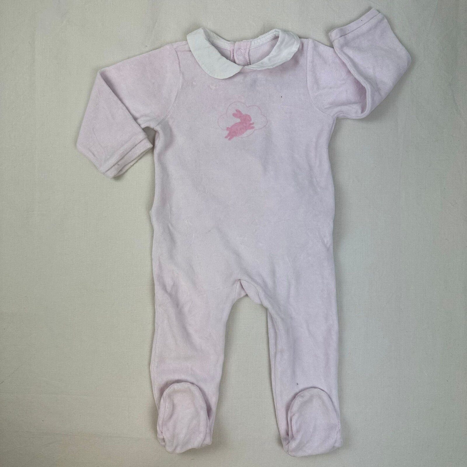 Autres commentaires : Pyjamas une piéce rose en velours, col claudine blanc avec motif centrale un lapin et une fermeture au dos par boutons pressions.