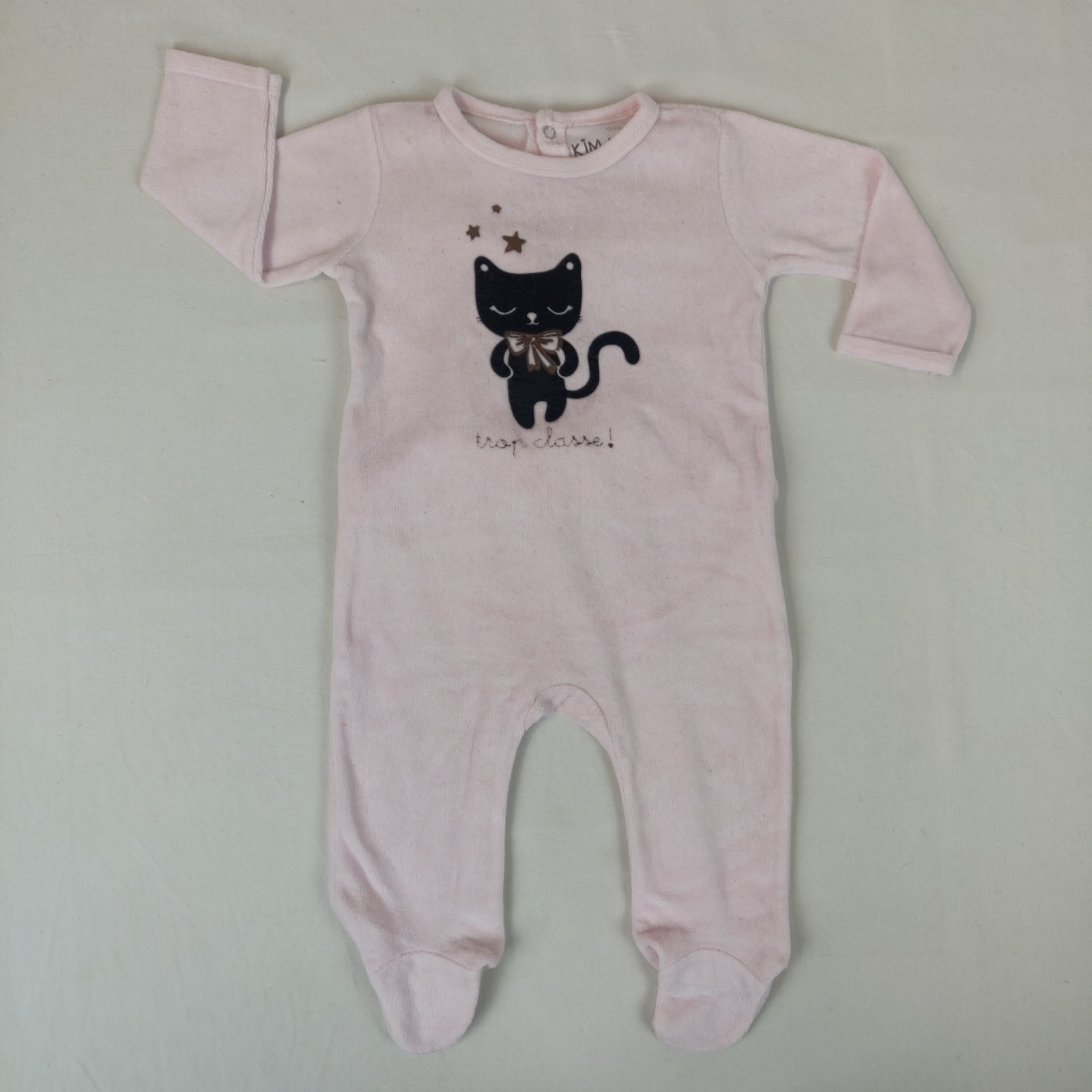 Autres commentaires : Pyjama rose avec chat noir et fermeture à boutons pression au dos et petit défaut bouton abimé.