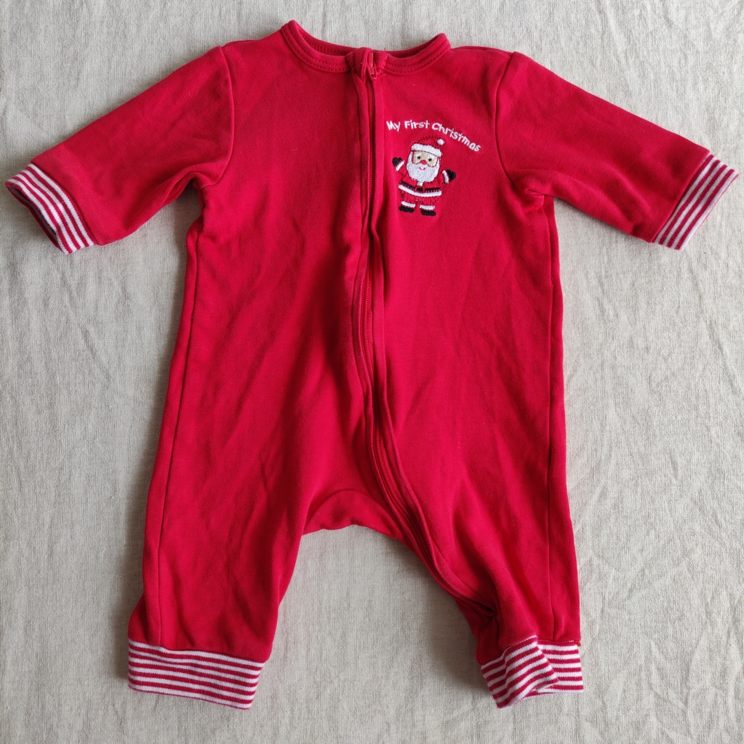 Autres commentaires : Pyjama sans pieds pour occasion spéciale « My First Christmas » , motif père Noël. Fermeture par zip à l’avant.