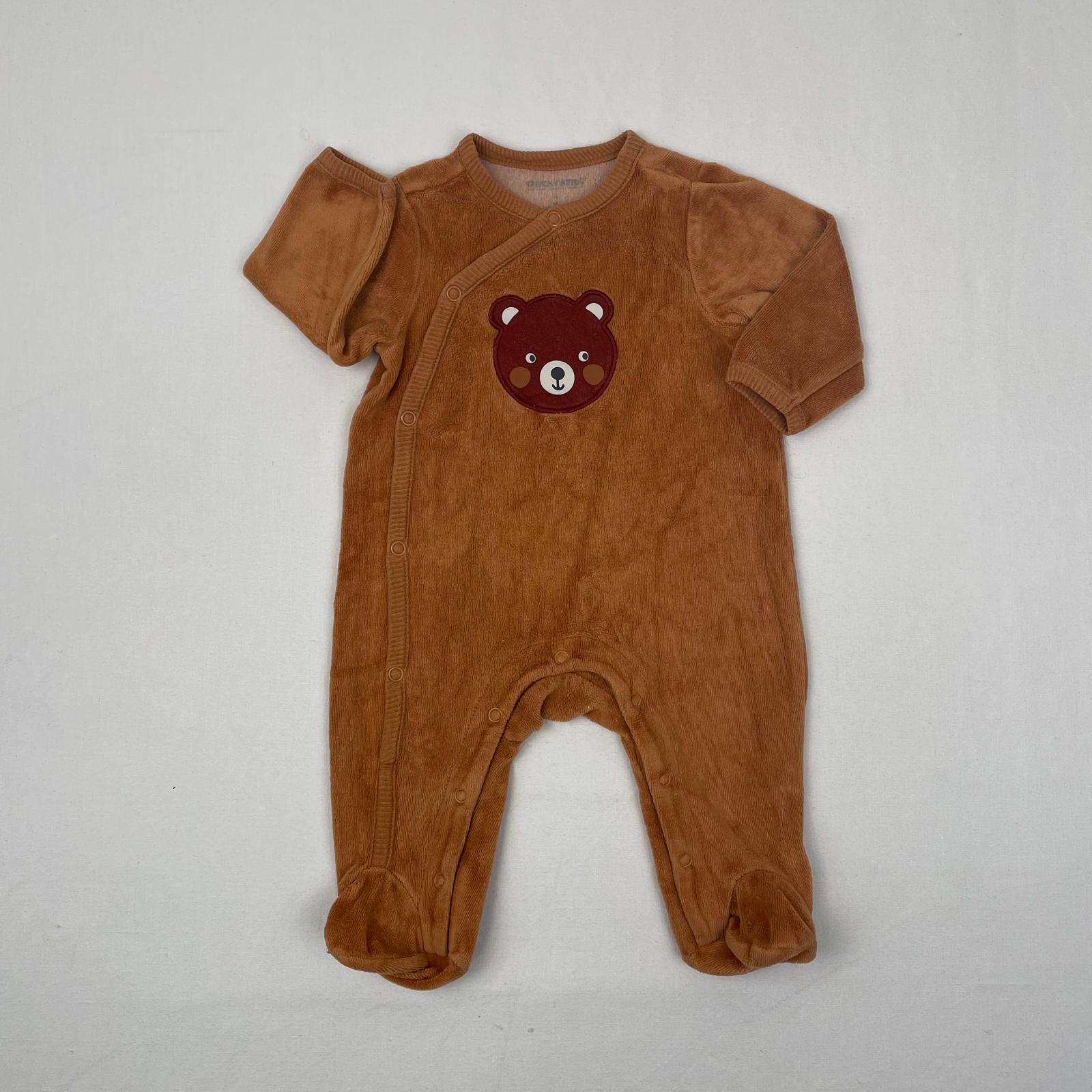 Autres commentaires : Pyjama 1 piéce en velours avec pied, manches longues, fermeture par boutons pression devant, devant motif tête d’ours