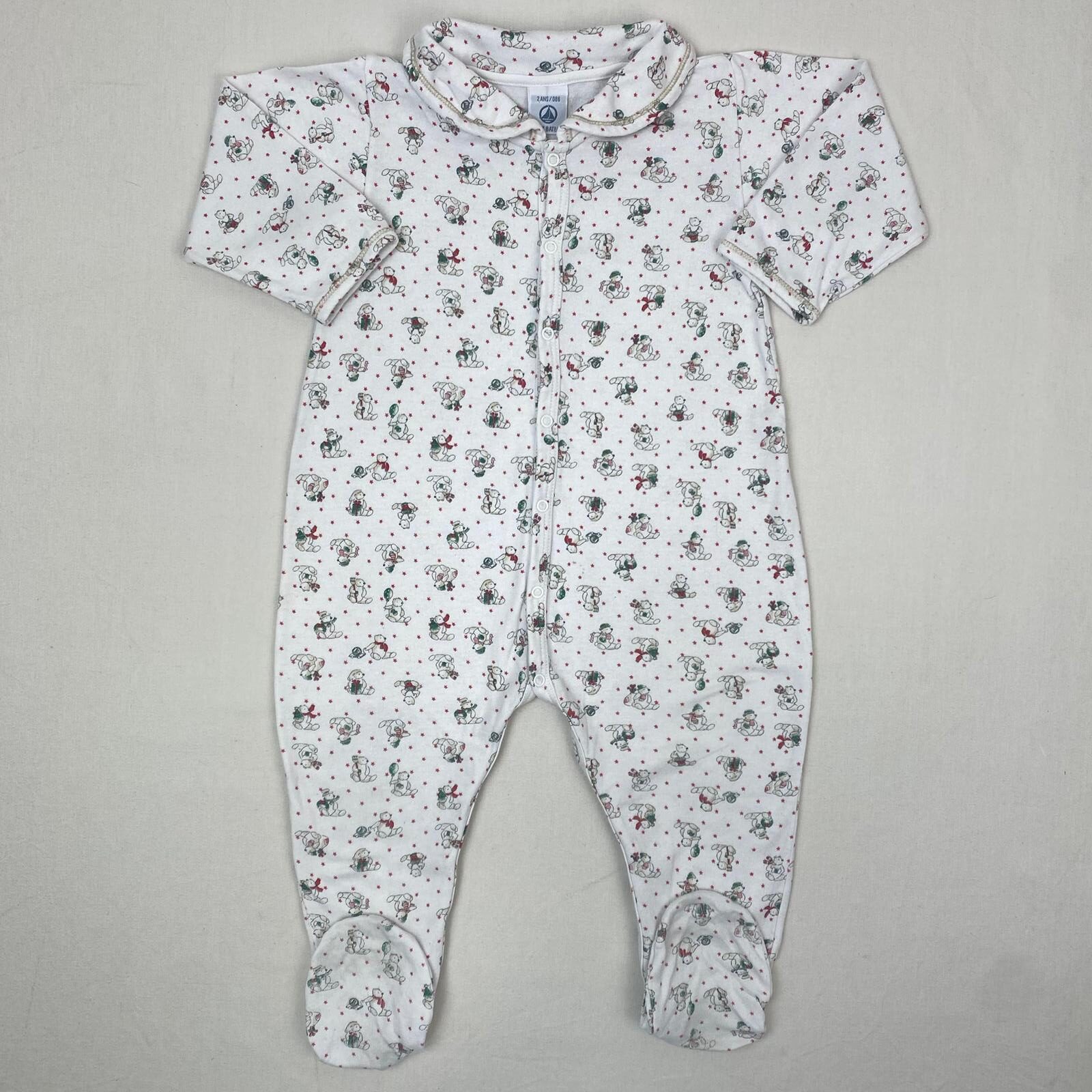 Autres commentaires : Pyjama 1 pièce à manches longues blanc avec des motifs d’ours, col polo, fermeture par boutons pressions
