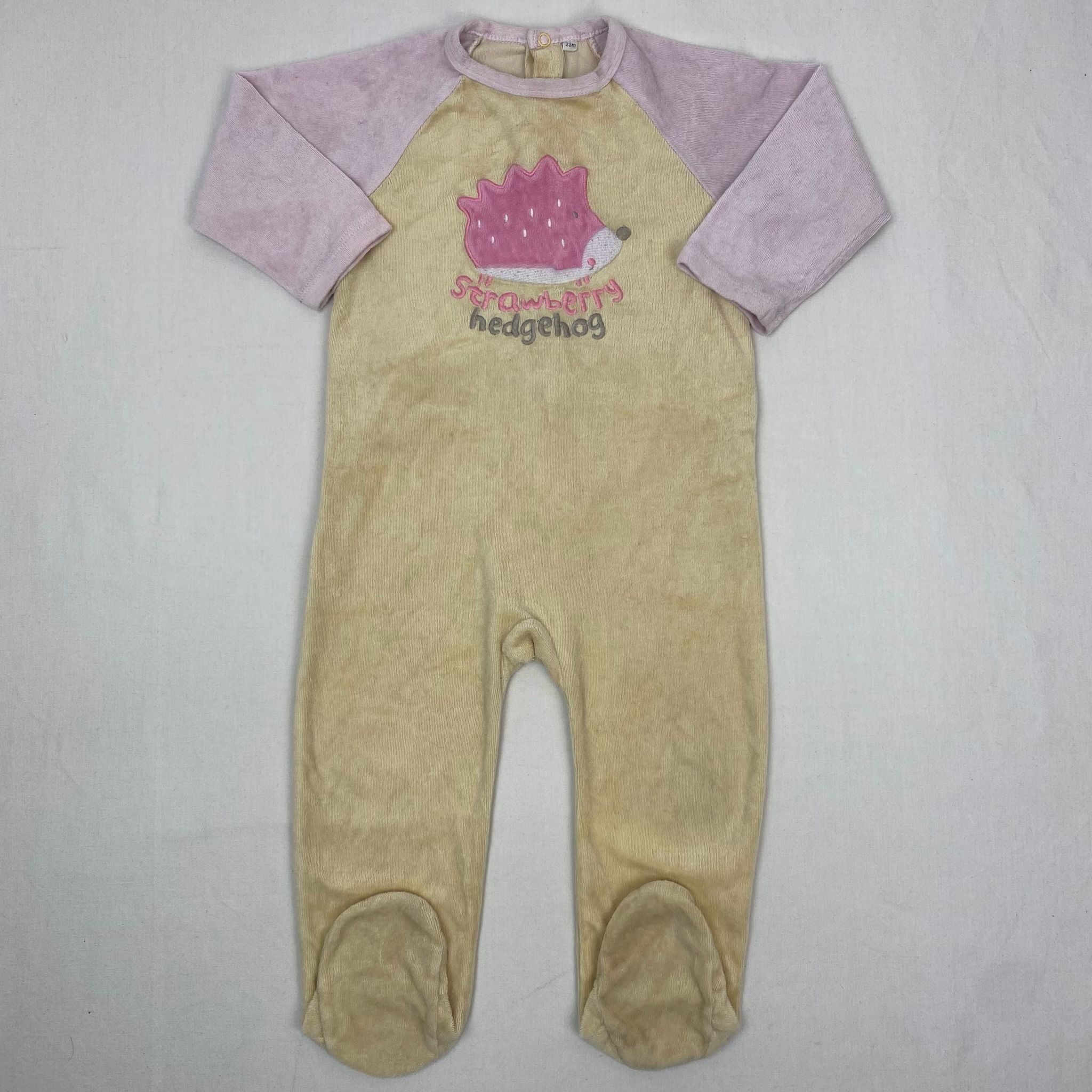 Autres commentaires : Pyjama 1 pièce jaune et rose avec un motif de hérisson au centre, col rond, fermeture par boutons pressions