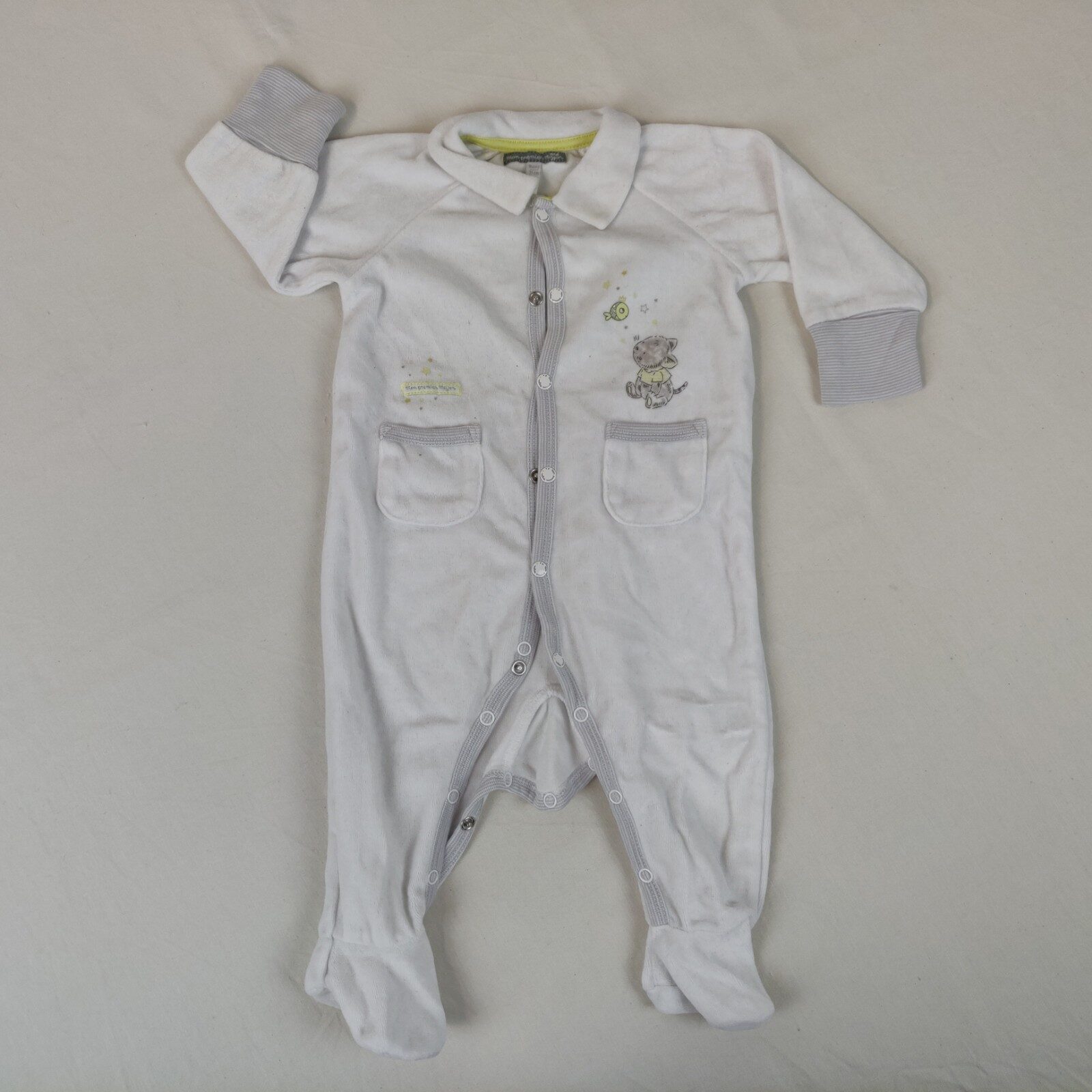 Autres commentaires : Pyjama 1 pièce blanc avec fermeture à boutons pression et col 77% coton et 23% polyester