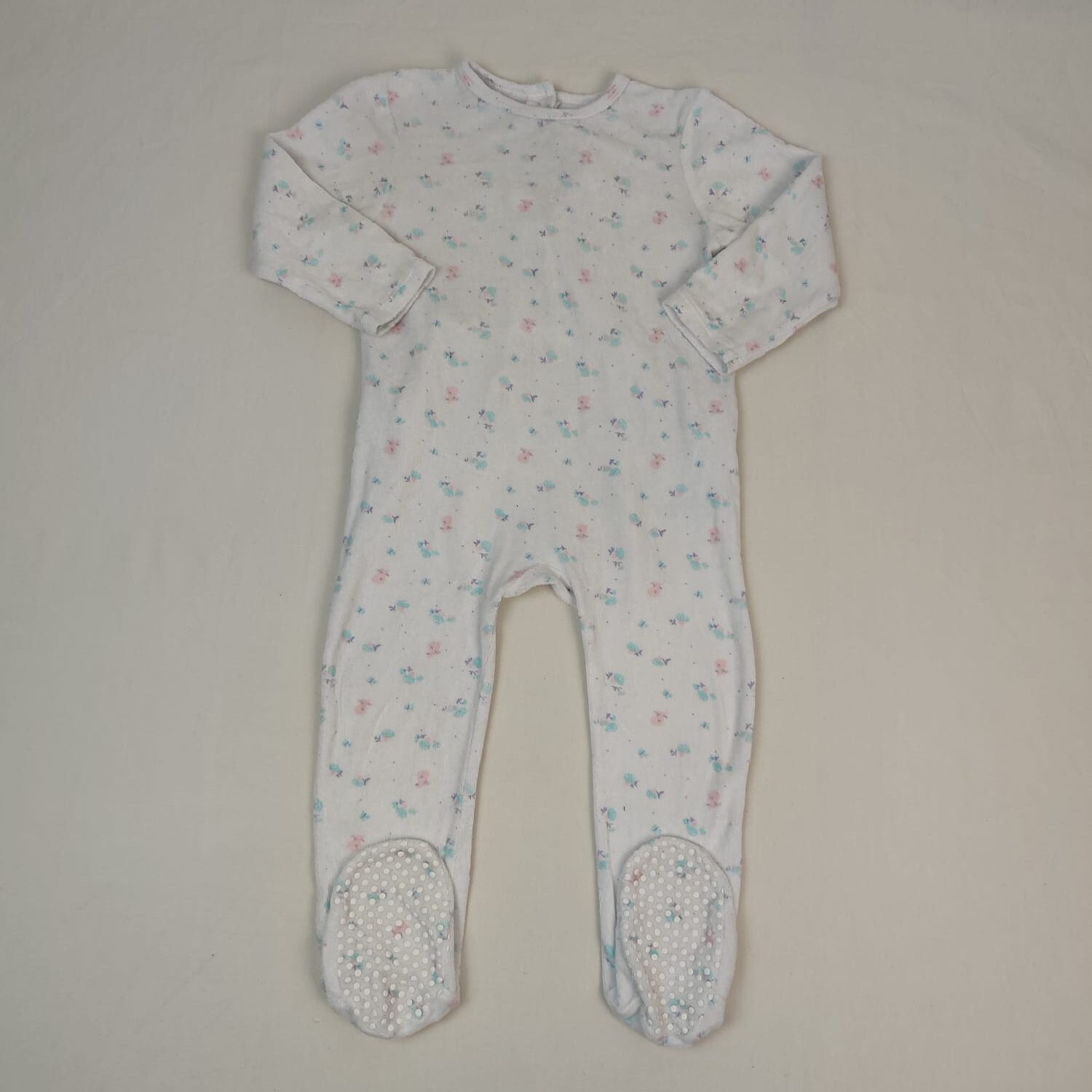 Autres commentaires : 25% polyester. Pyjama velours blanc motif petites fleurs, fermeture par boutons pression au dos, pieds antidérapants.