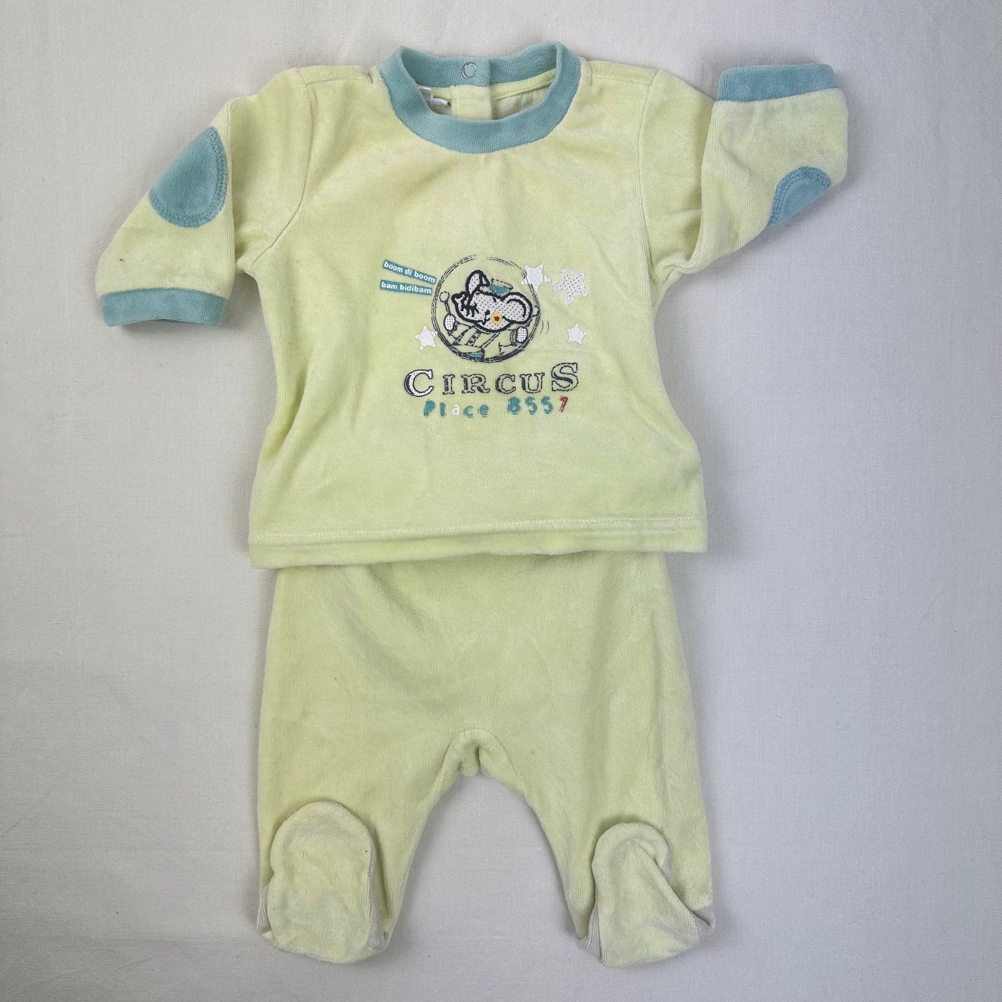 Autres commentaires : Pyjama une piéce manches longues vert avec motif centrale un elephant et une fermeture au dos par boutons pressions.