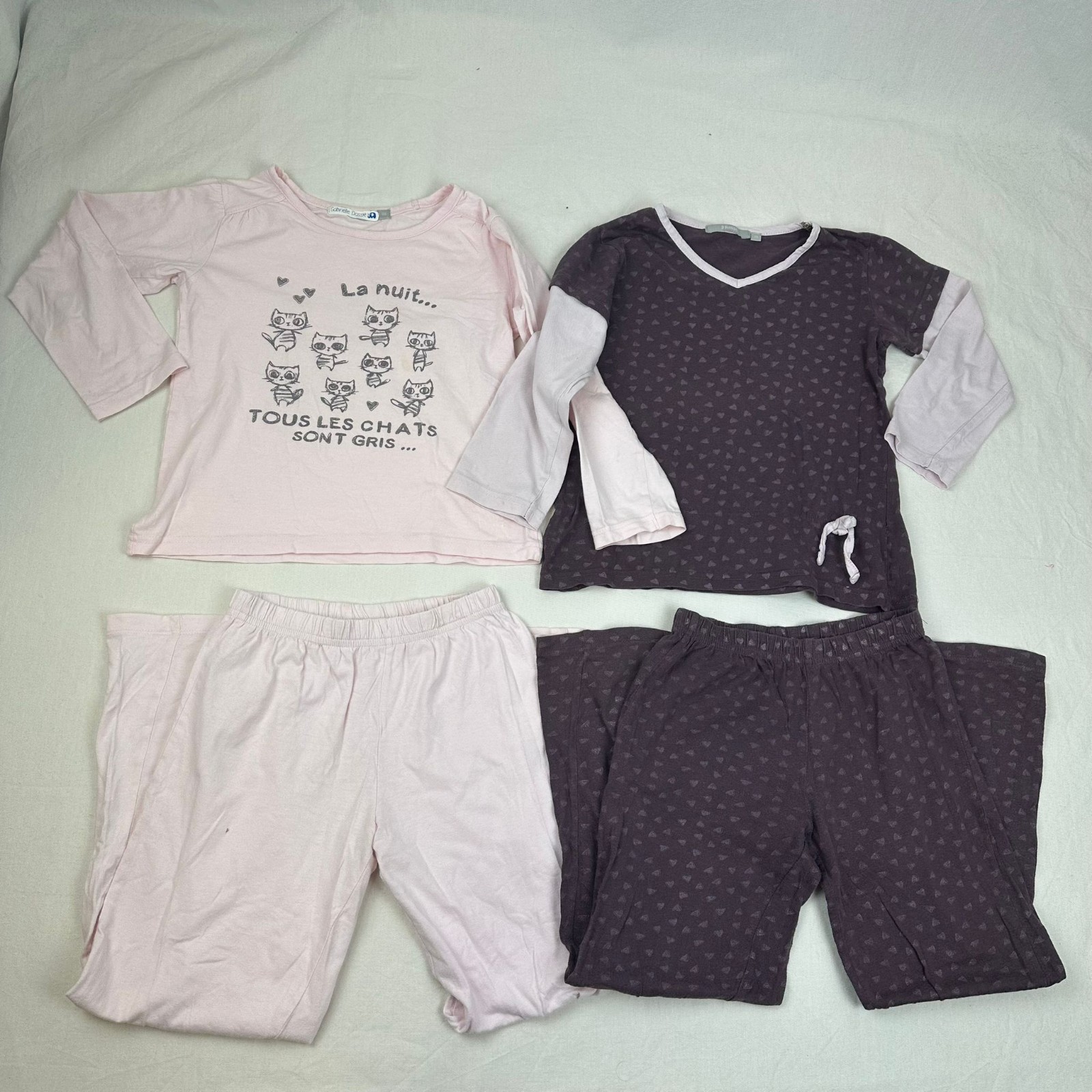 Autres commentaires : 2 pyjamas 2 piéce (t-shirt manches longues et panntalon large élastiquée): un ensemble rose et l’autre violet.