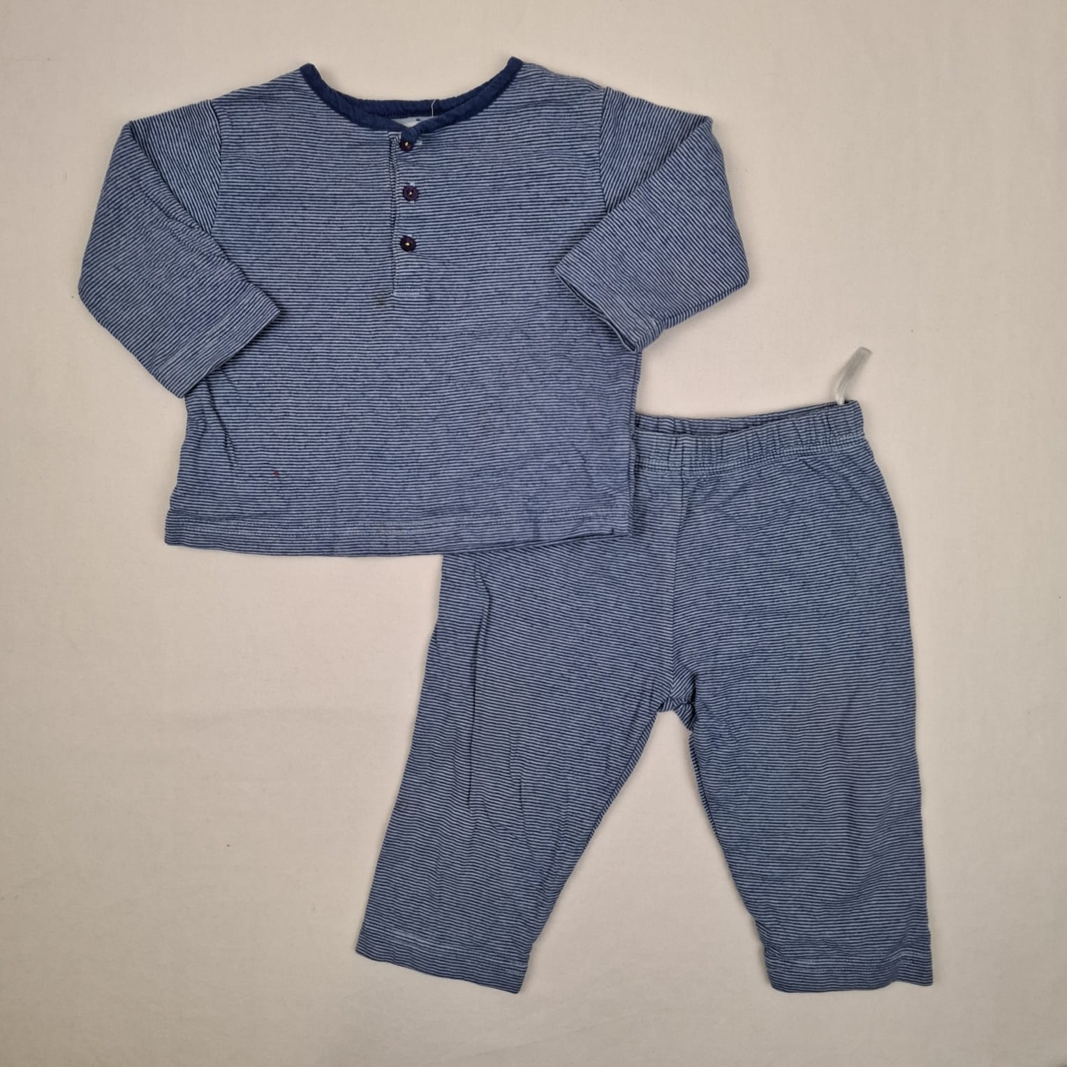 Autres commentaires : Ensemble pyjama à rayures bleues et bleu foncé de 2 pièces, doublure en coton: -T-shirt à manches longues, col rond. Pantalon assorti en coton, taille élastiquée.