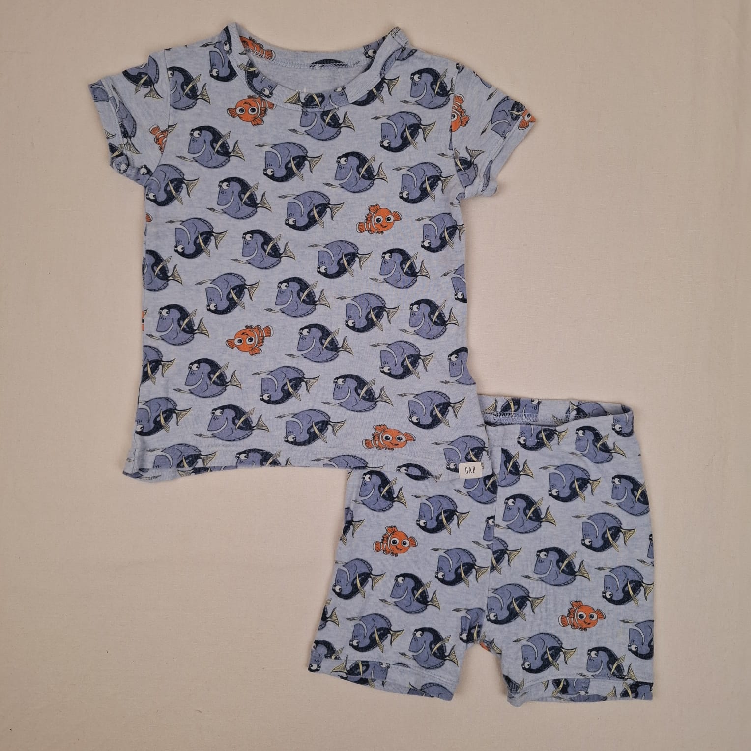 Autres commentaires : Ensemble 2 pièce de pyjama bleu clair à motif Dory et Nemo: -T-shirt, col rond. -Short slim, taille élastique.