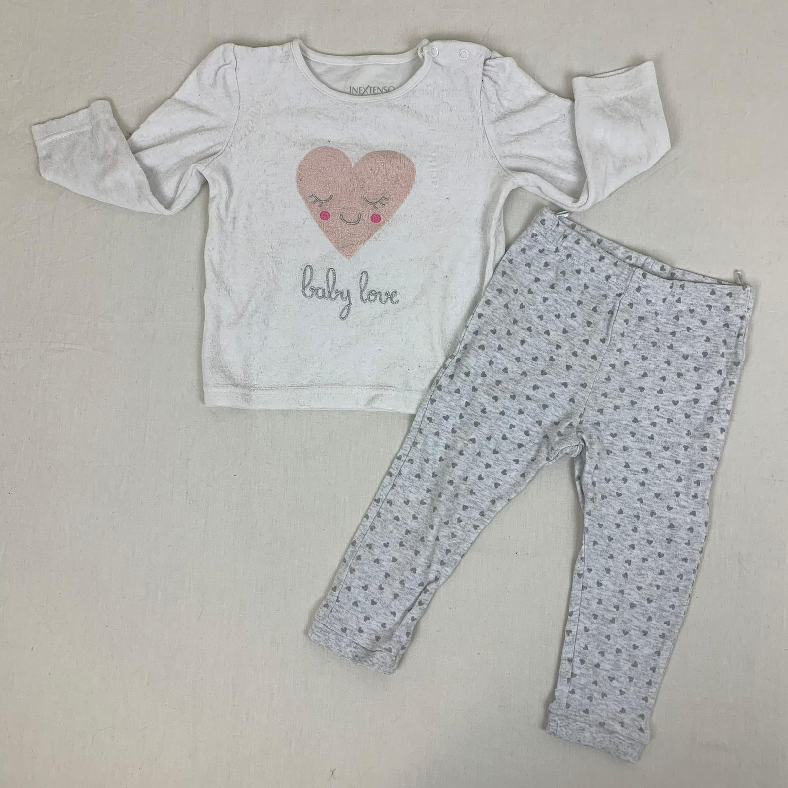 Autres commentaires : T-shirt manches longues blanc col rond fermé par bouton pression à l’épaule gauche. Legging gris avec taille élastiquée.