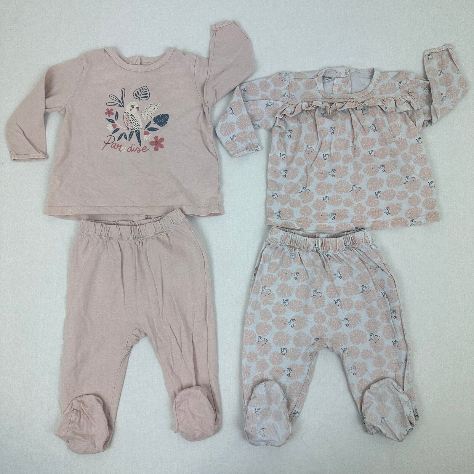 Autres commentaires : Lot de 2 pyjamas 2 pièces, haut et bas solidarisables par bouton pression. Couleur un peu passée