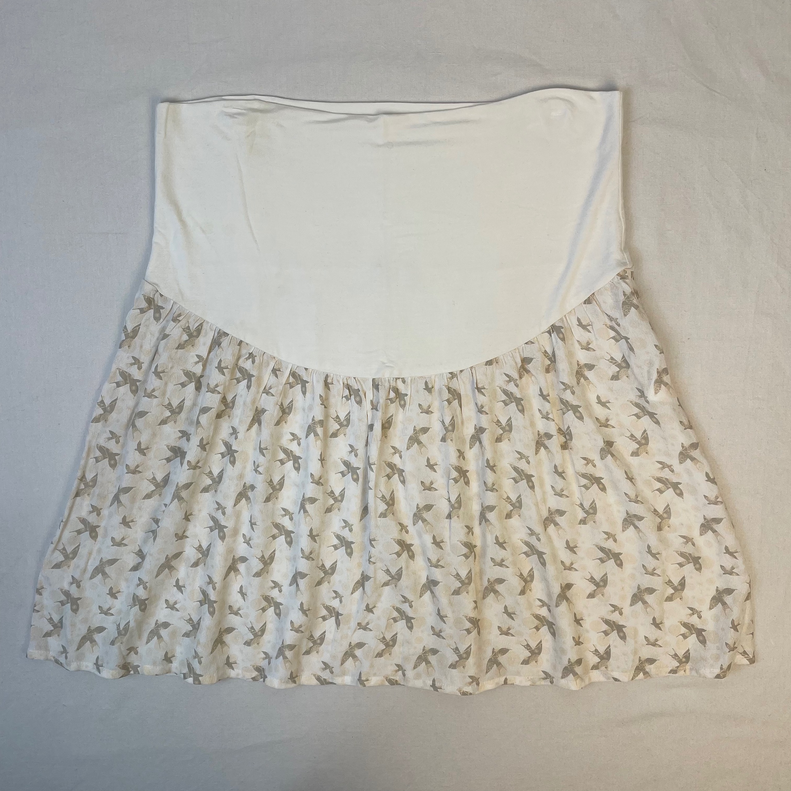 - Jupe de maternité blanche crème avec des motifs d’oiseaux