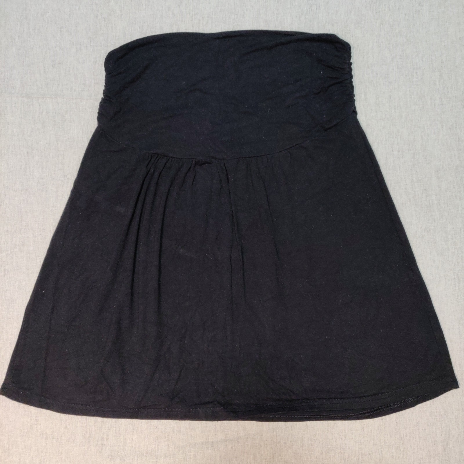 Autres commentaires : Contient de l’élasthanne. Jupe fluide noire unie, bandeau large à la taille. Très agréable à porter. Longueur 40 cm
