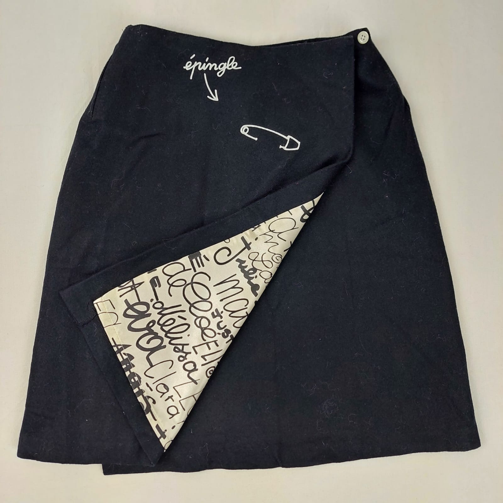 Autres commentaires : 35% viscose, Jupe noire A-line imprimé avant et arrière, doublure polyester 100%