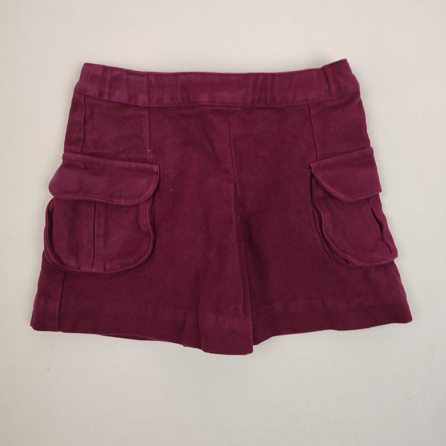 Autres commentaires : 1% élasthanne. Jupe unie en velours épais bordeaux, doublure en 100% coton, pli central à l’avant et à l’arrière, ceinture ajustable par élastique intérieur, fermeture à l’arrière par zip.