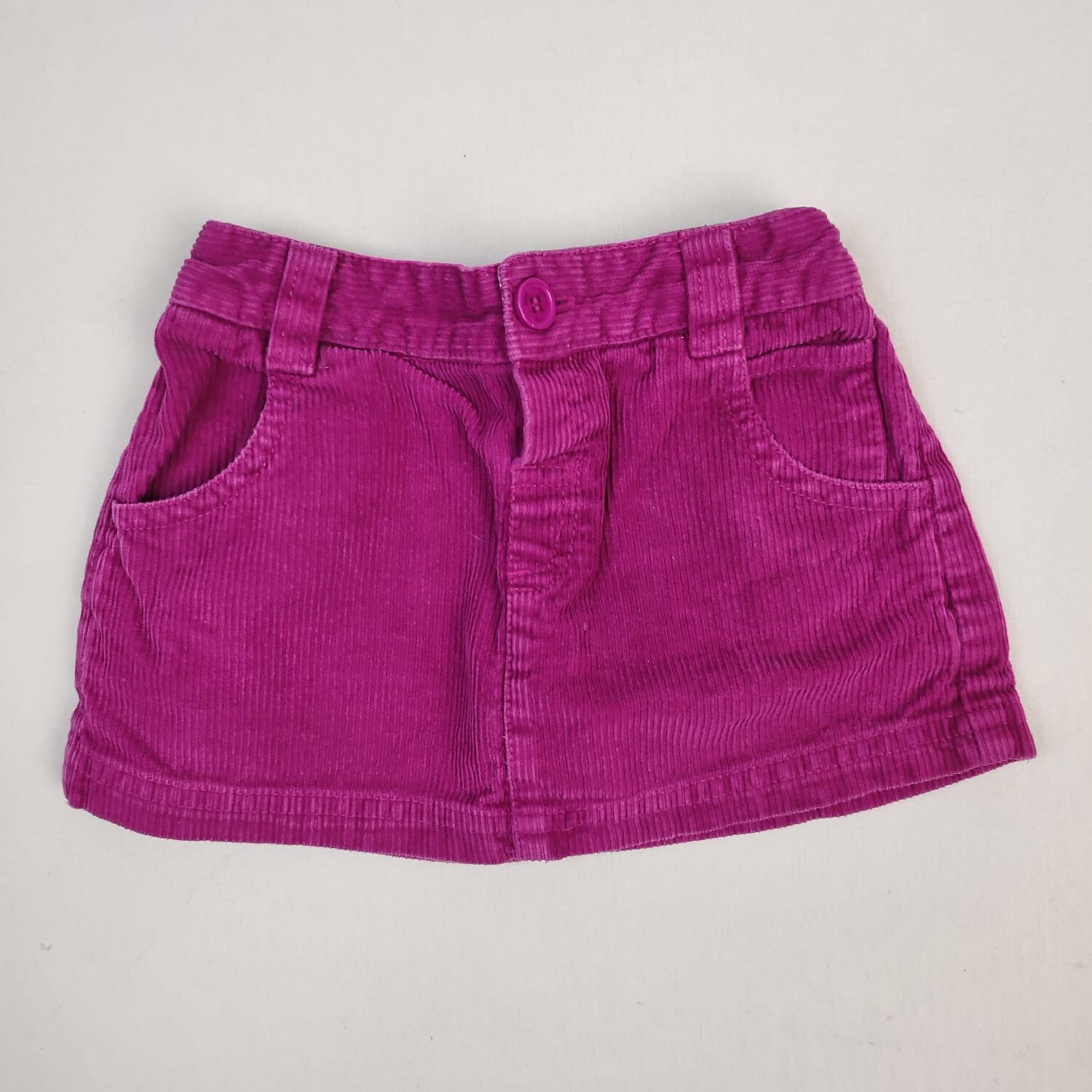 Autres commentaires : Jupe en velours côtelé rose fuschsia, forme un peu trapèze, motif liberty sur étiquette derrière et intérieur de la ceinture, taille semi élastiquée et ajustable par élastique intérieur, poches arrière en forme de noeuds, fermeture devant par bouton.