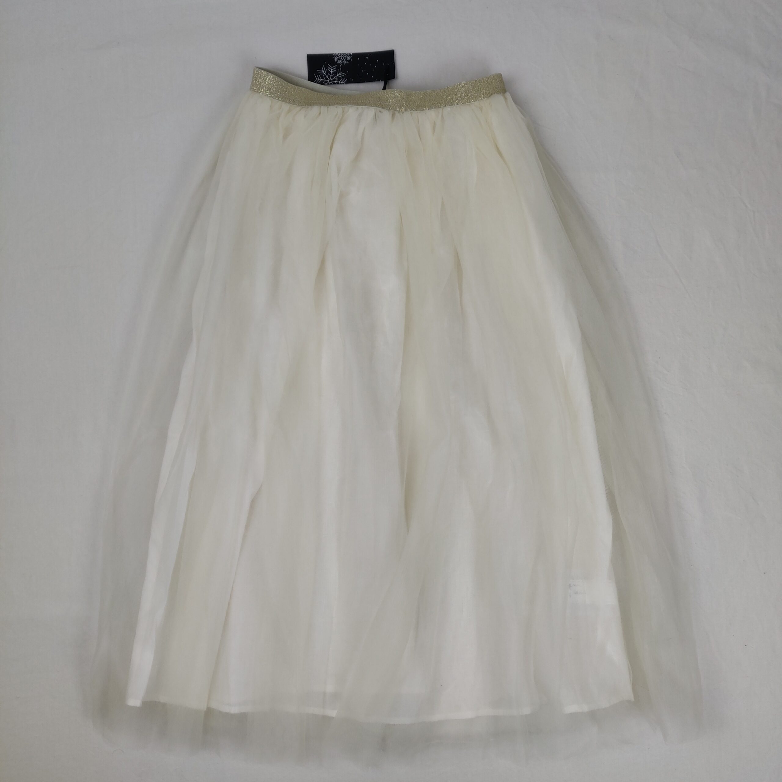 Autres commentaires : Jupe longue en tulle écru double épaisseur, doublée en fine toile de coton