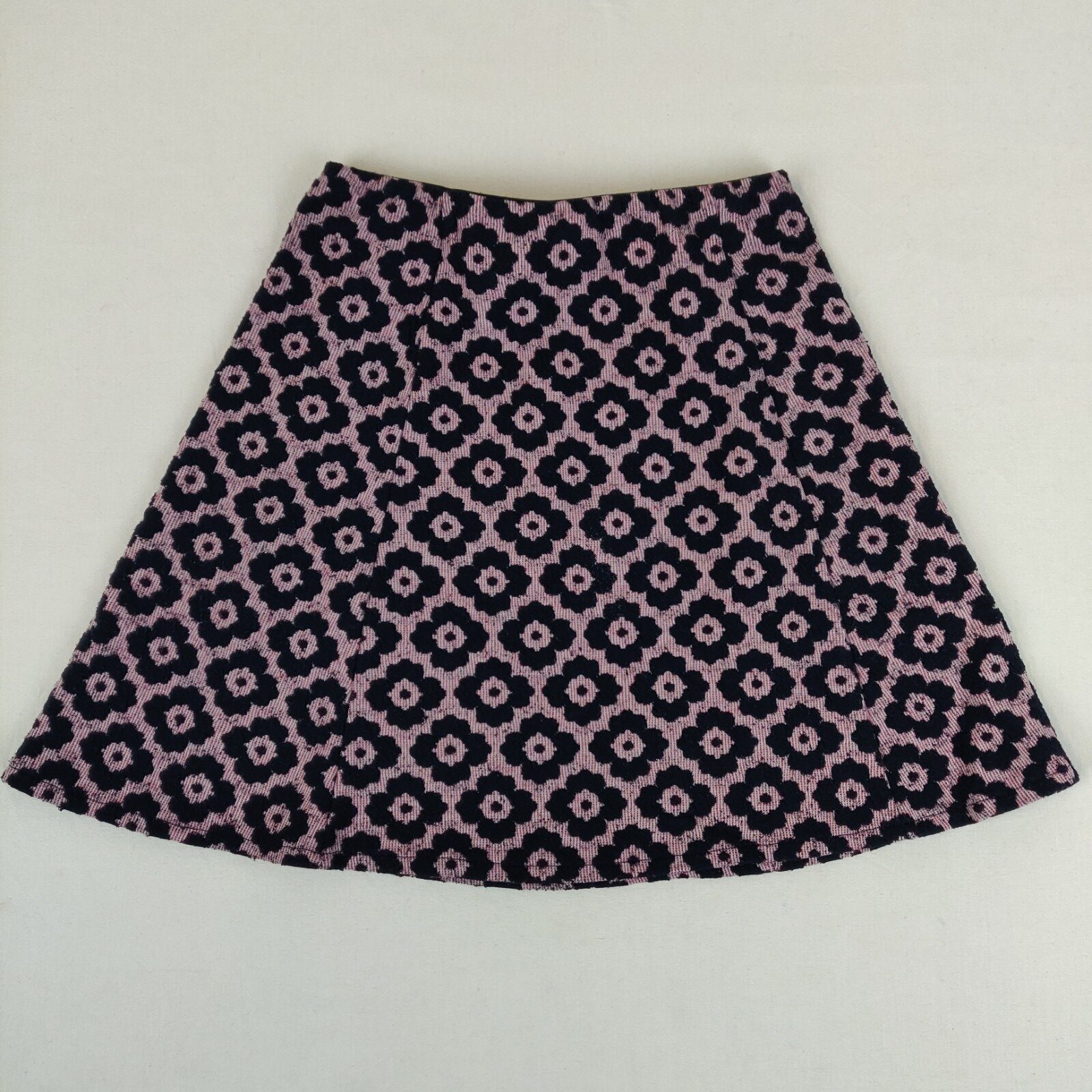 Autres commentaires : Jupe rose en fleurette bleu foncée avec une ceinture elastiqueée.