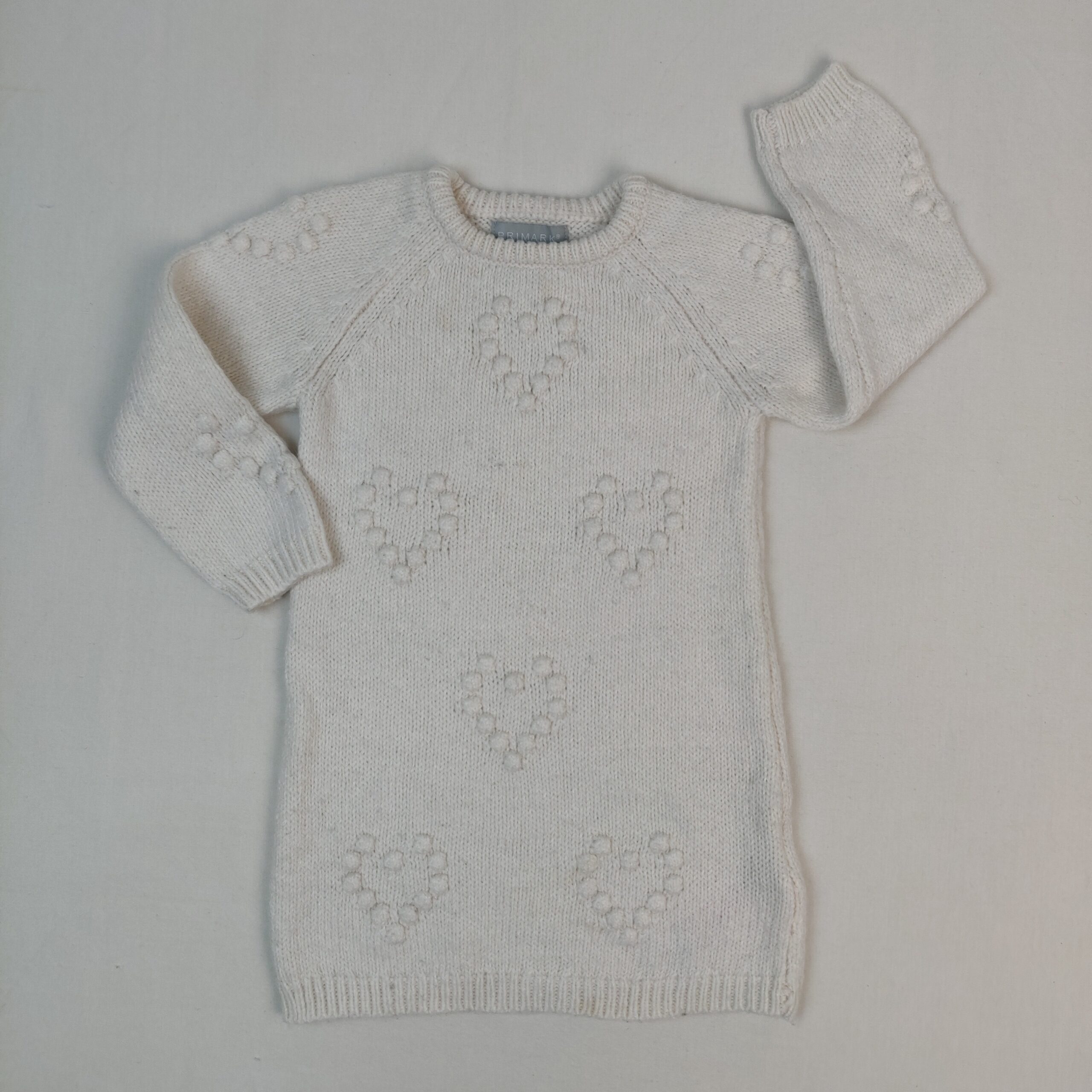 Autres commentaires : 11% Polyester, 6% Nylon, Pull manches longues blanc en maille, col rond, motifs coeurs en relief ton-sur-ton.