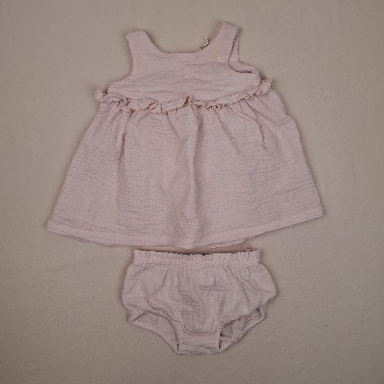 Autres commentaires : Robe en mousseline de coton rose pale avec la culotte bloomer assortie
