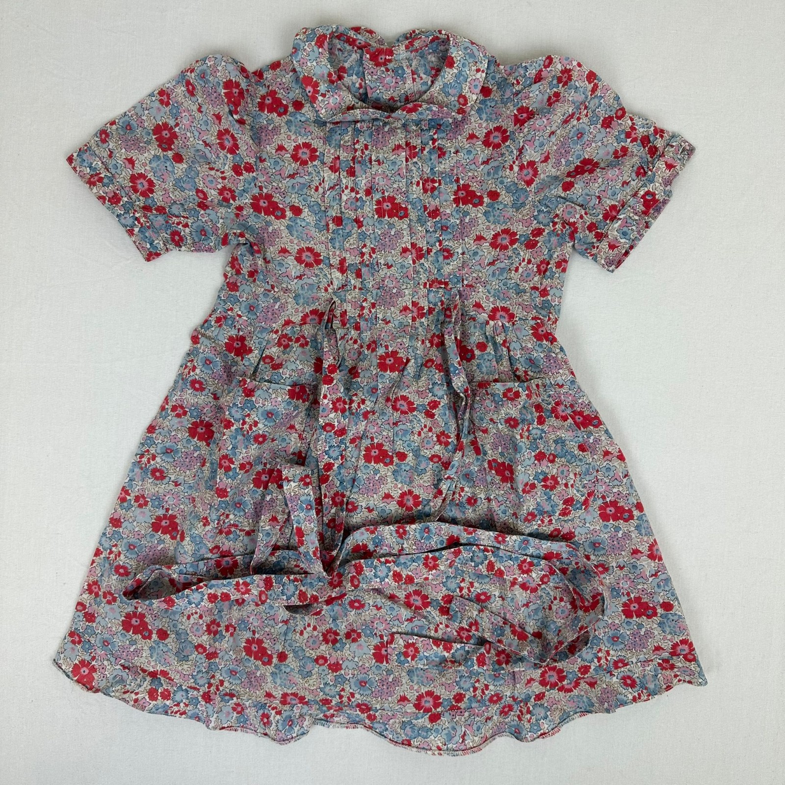 Autres commentaires : Robe manches courtes, col claudine, motif liberty, fermeture au dos par boutons.