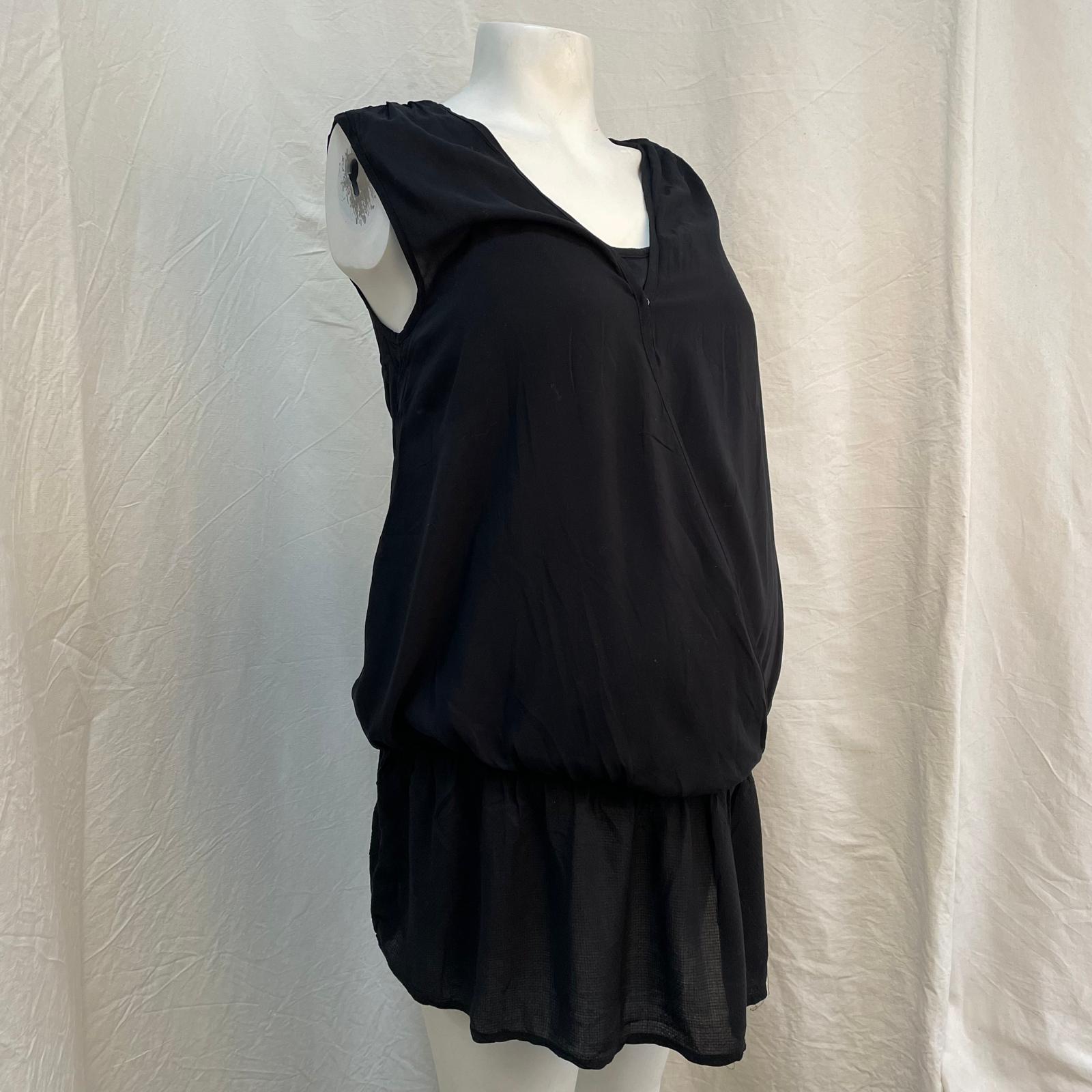 Robe noire sans manches, taille basse élastiquée, en dessous débardeur intégré de bretelles amovibles pour l’allaitement en 95% coton et 5% élasthanne