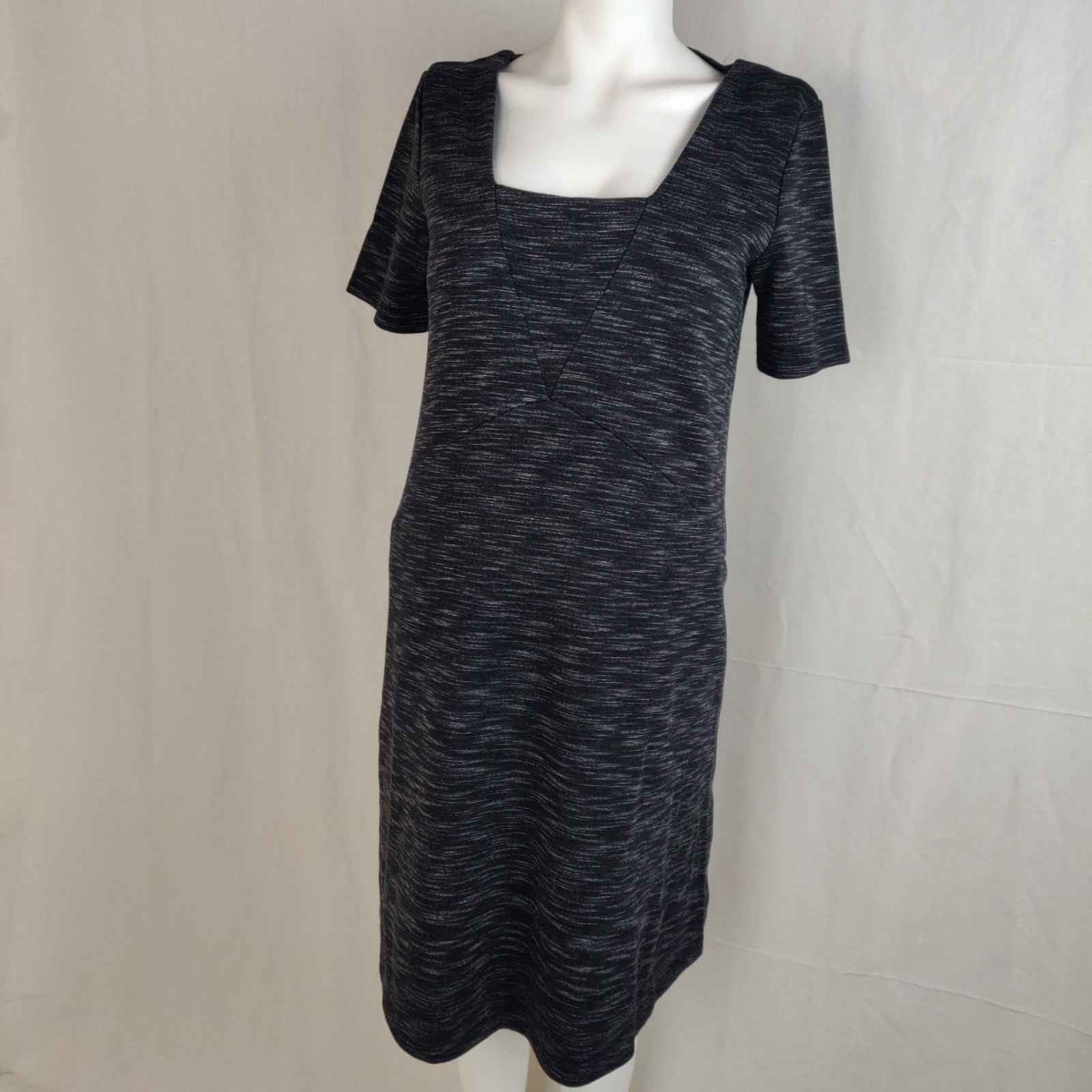 Autres commentaires : 15% viscose. Robe mi-longue anthracite chinée, manches courtes.