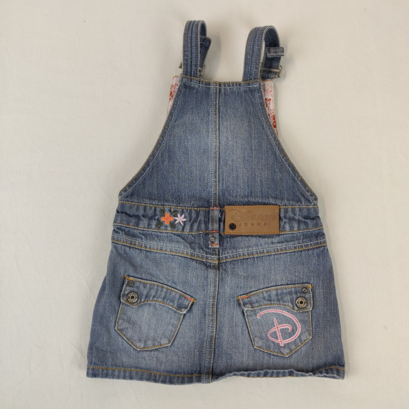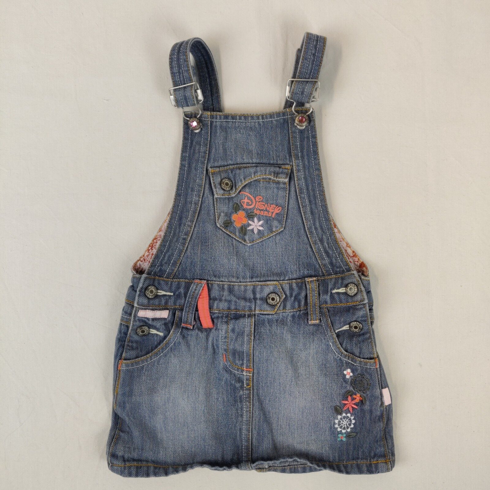 Autres commentaires : Robe à bretelles réglables en denim – bleu. Pochette centrale décorée de fleurs brodées. 2 poches latérales. Passants pour une ceinture. Fleurs brodées au niveau de la jupe. 2 poches arrières réhaussées de fleurs brodées.