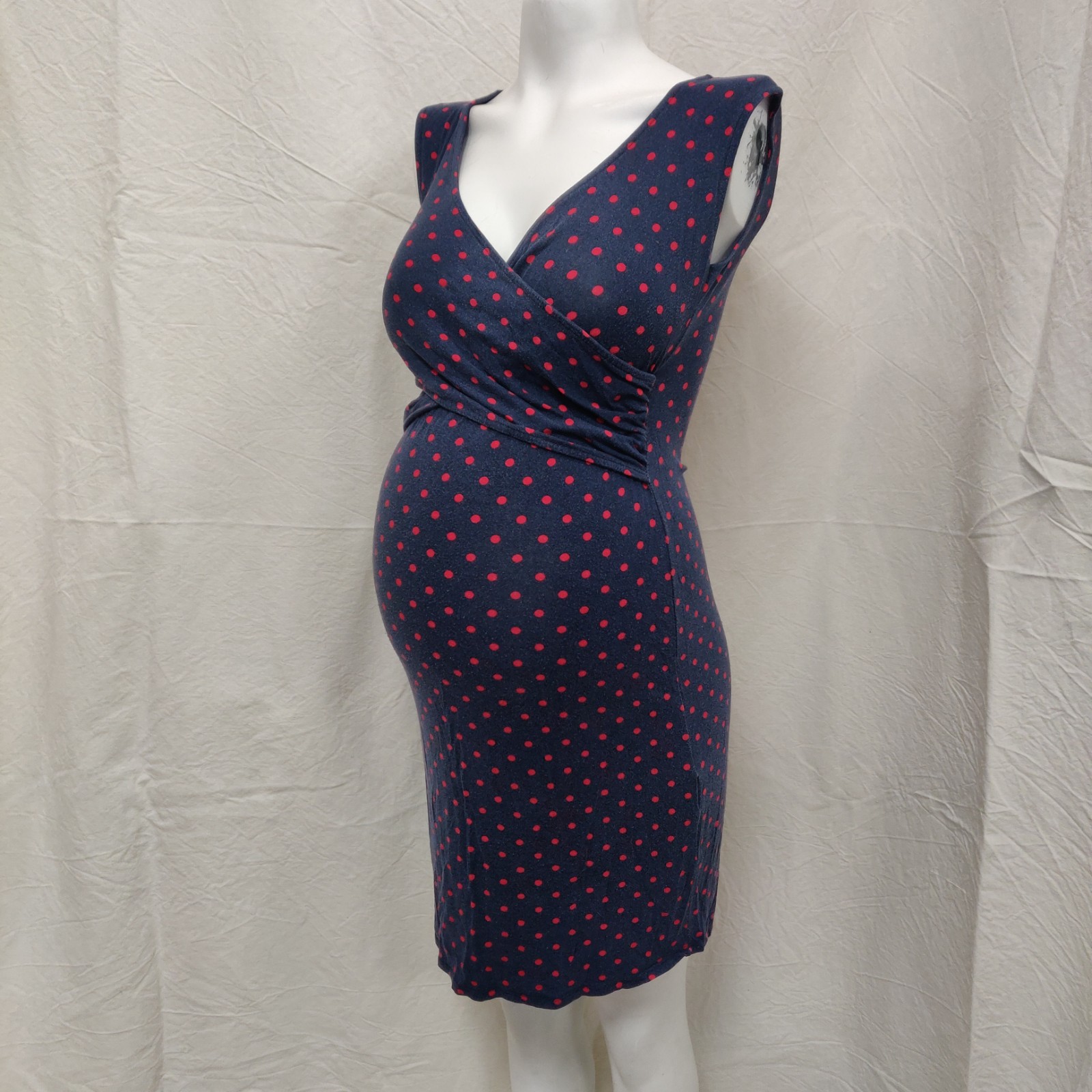 Autres commentaires : 4% elasthanne. Robe fluide à pois fuschia, coeur croisé pour allaiter facilement. Un classique ! Quelques bouloches d’usage