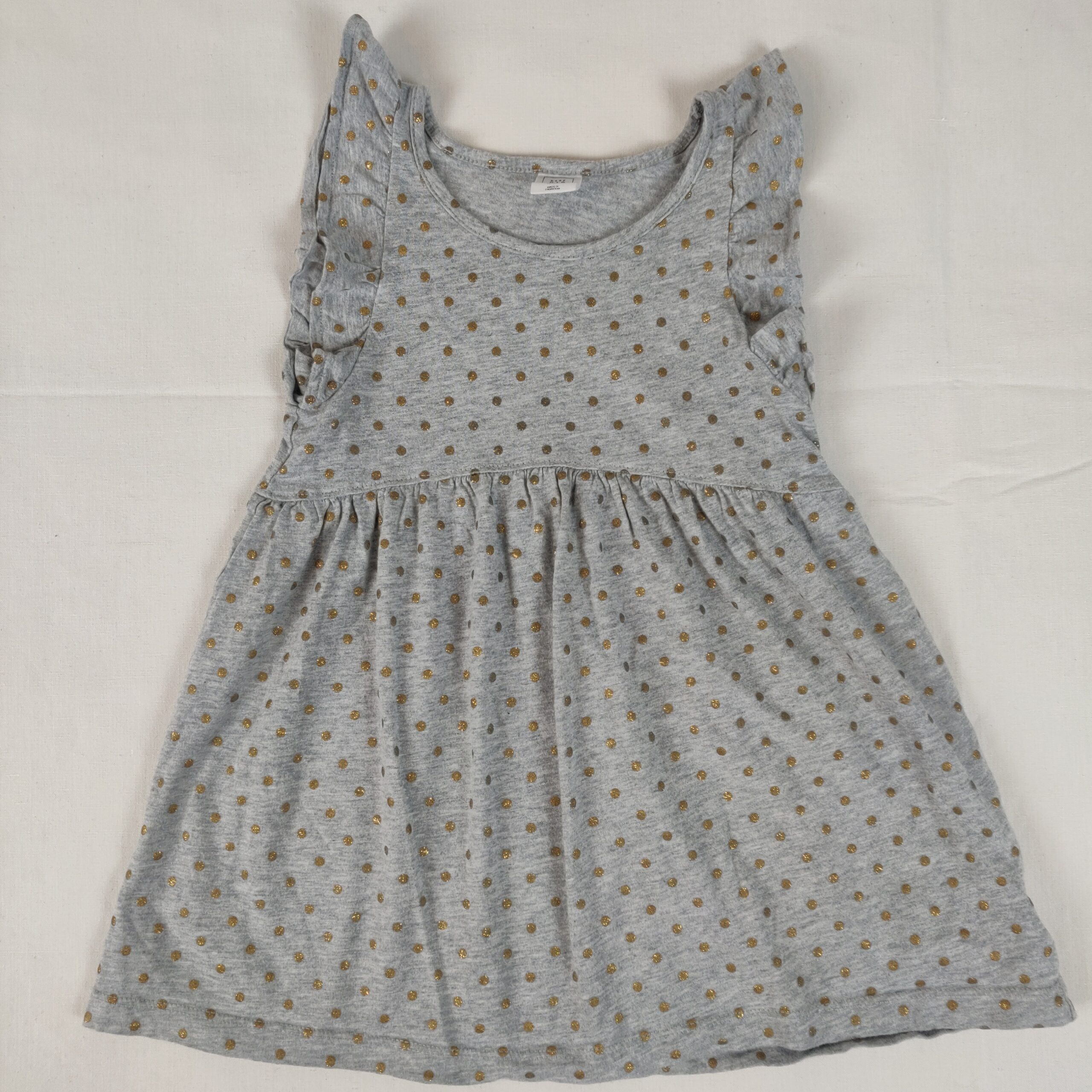 Autres commentaires : Robe – gris chiné à pois dorés – à manches courtes froncées