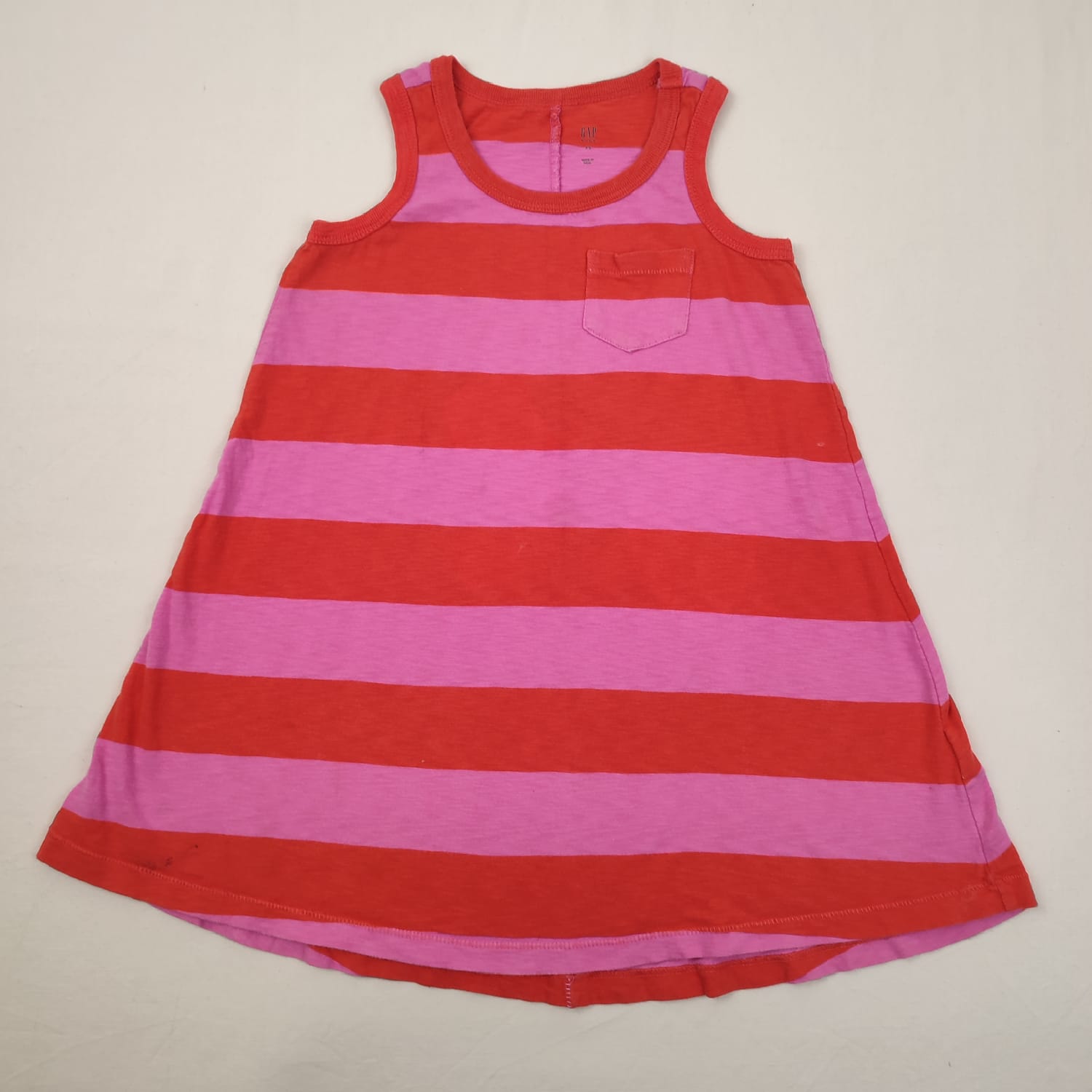 Autres commentaires : Robe orange à rayures rose sans manches.