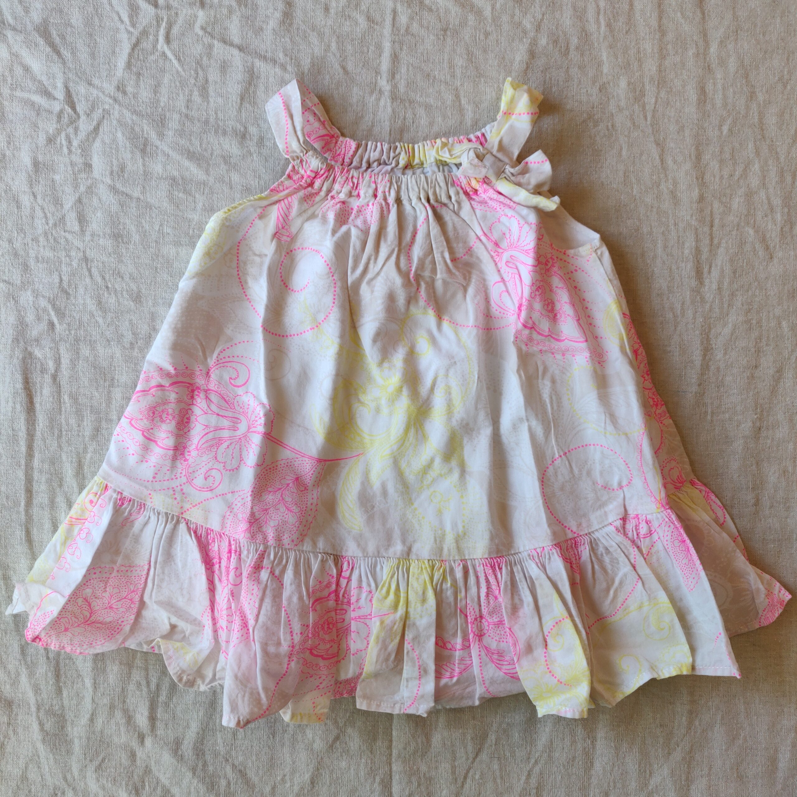 Autres commentaires : Robe à bretelles doublée – motifs floraux discrets jaune, rose et blanc