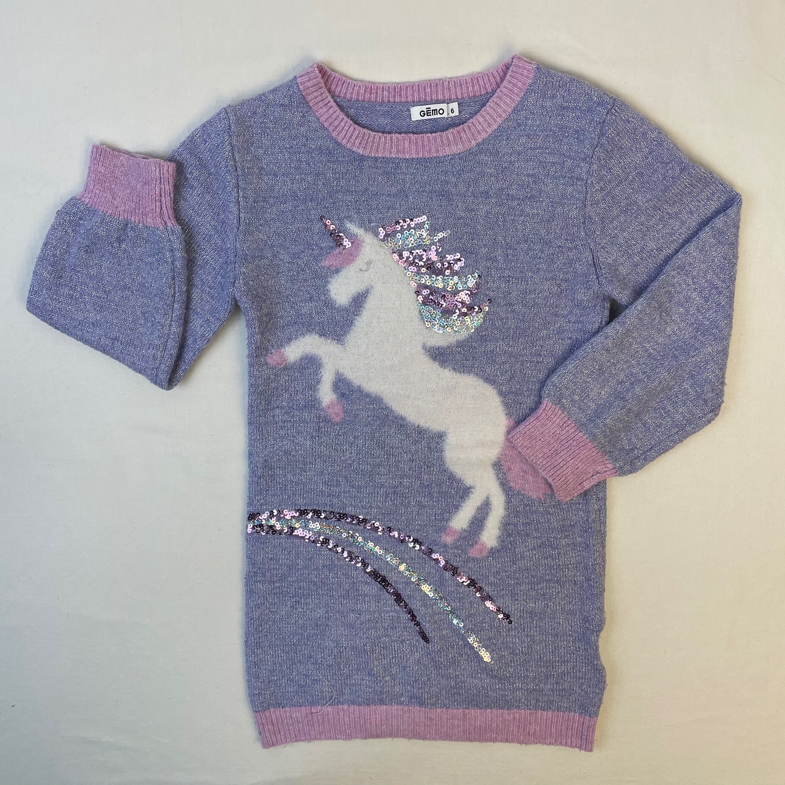 - Robe pull bleu avec motif licorne