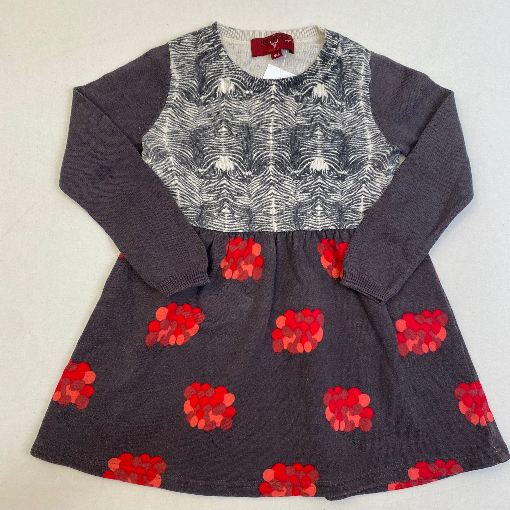 15% laine. Robe gris Heimstone pour Monoprix à manches longues, col rond, motif fantaisie.