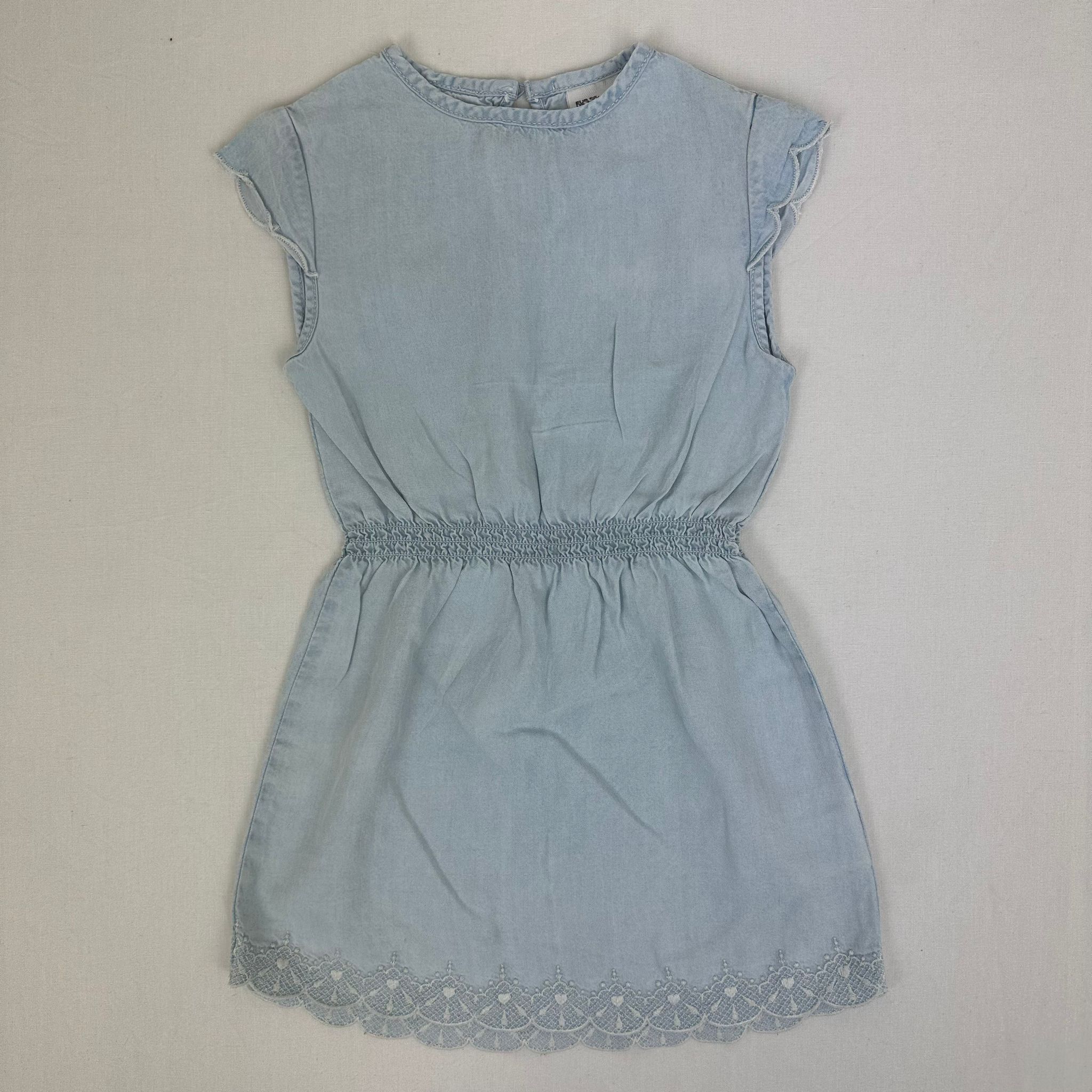 Autres commentaires : Robe manches courtes bleu avec taille élastiquée et une fermeture au dos par un bouton pression.