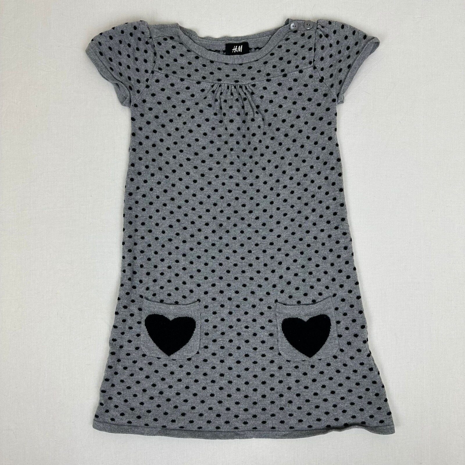 Autres commentaires : 30% coton et 30% viscose. Robe manches courtes gris avec des points noirs et 2 poches latéraux.