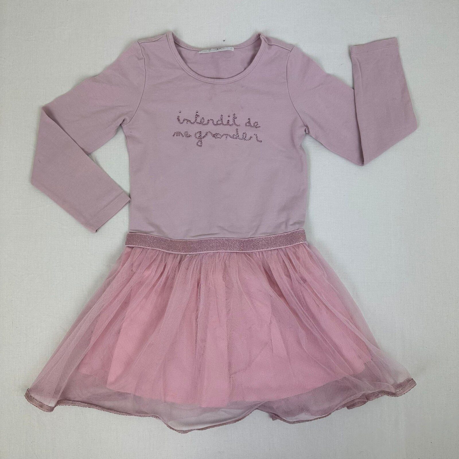 Autres commentaires : Robe longue rose. Haut manches longues en jersey, bas en tulle doublure en toile.