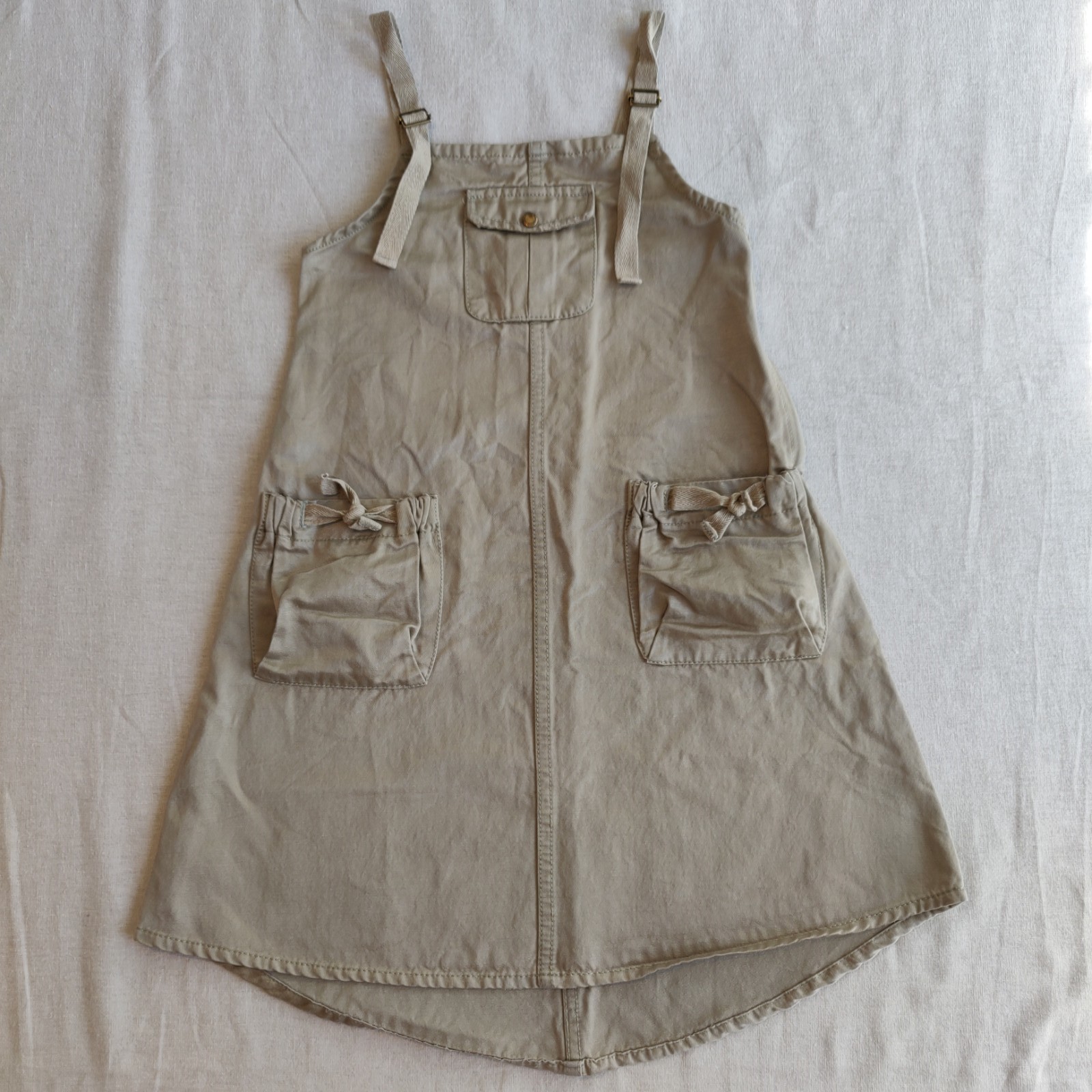 Autres commentaires : 31% polyamide. Robe dorée à bretelles, deux poches plaquées à l’avant. Asymétrique: le bas à l’arrière se finit légèrement en pointe. Casual chic !