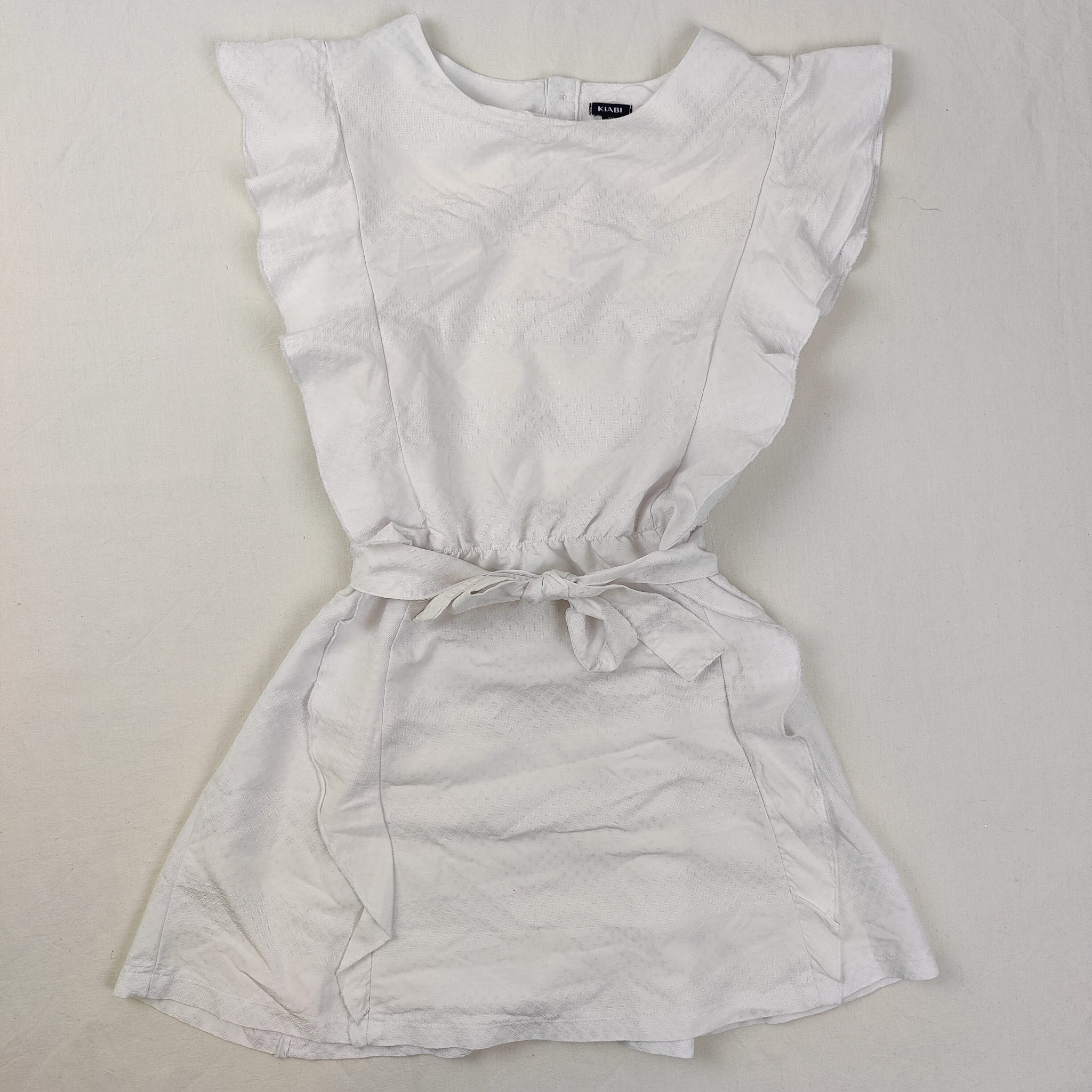 Autres commentaires : Robe blanche, trois petite taches de 2mm, manche courte volentée sur toute la longueur