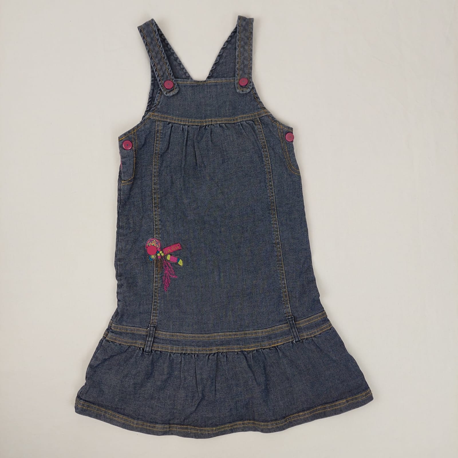Autres commentaires : 1% élasthanne, Robe salopette en jean bleu, broderi plume et attrape rève, doublure en coton 100%