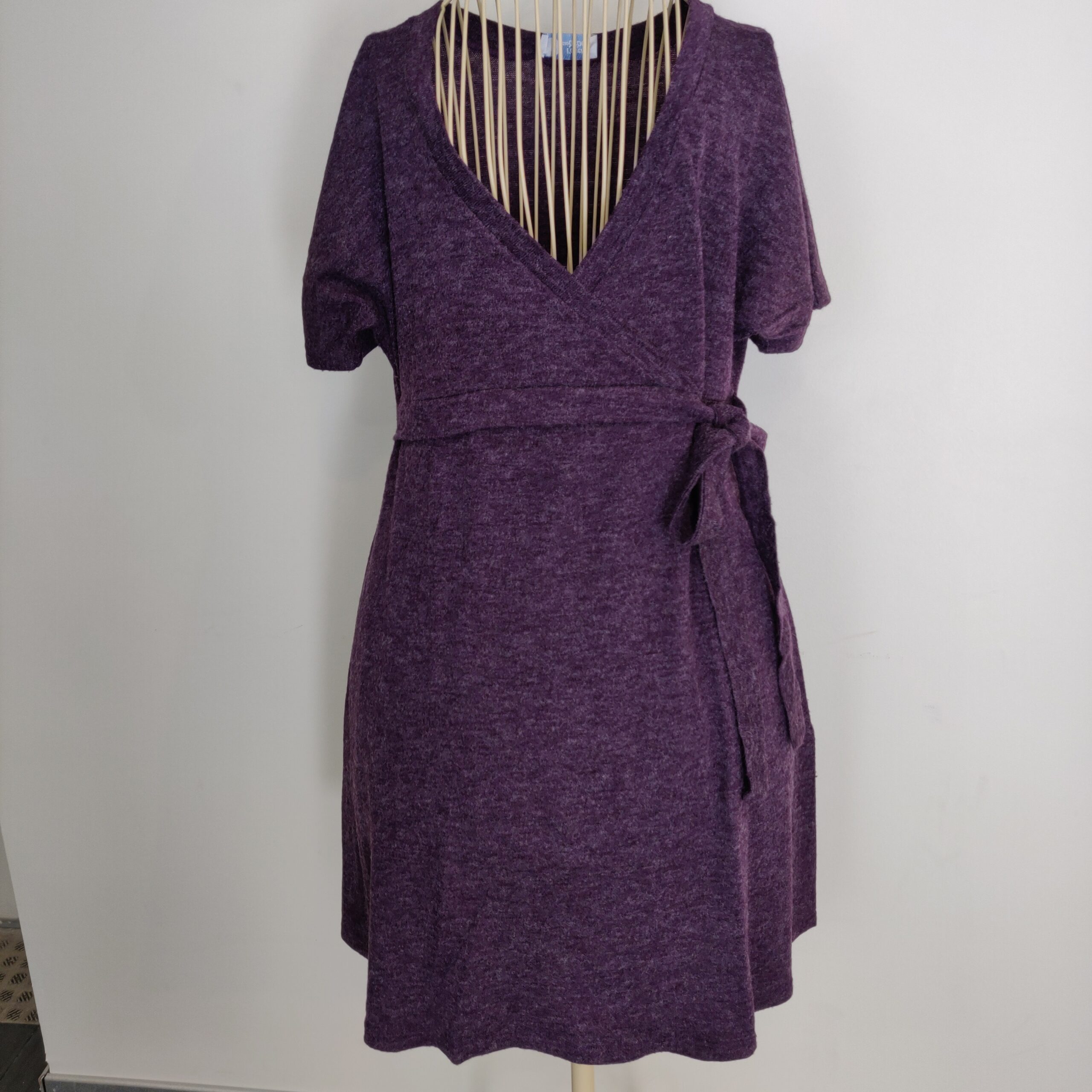 Autres commentaires : 20% polyamide – Robe manches courtes coeur croisé avec effets portefeuille et lainage