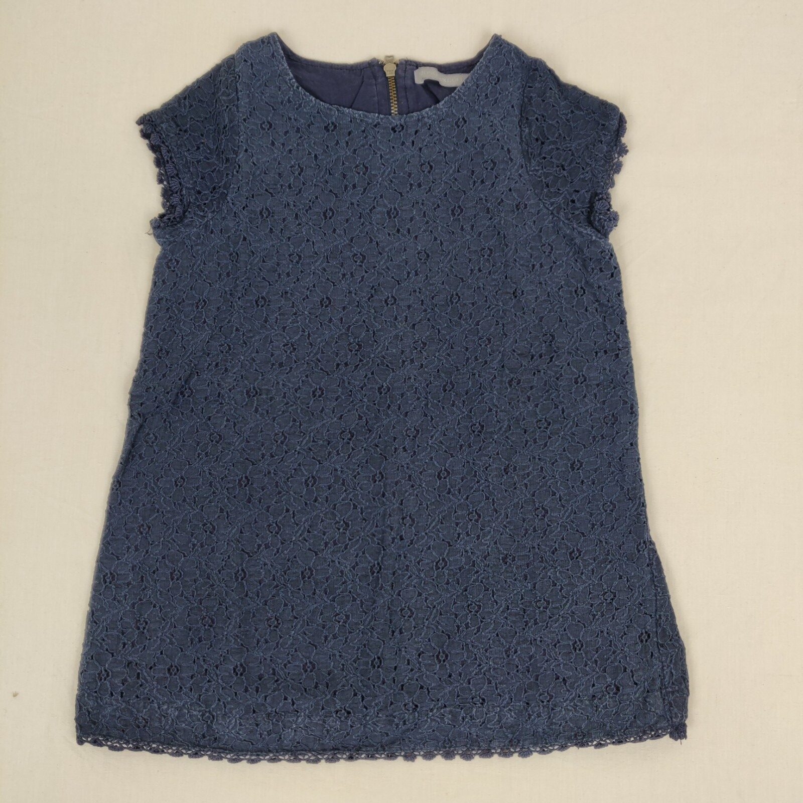 Autres commentaires : 16% polyamide. Robe manches courtes bleu en dentelles avec une doublure 100% coton.