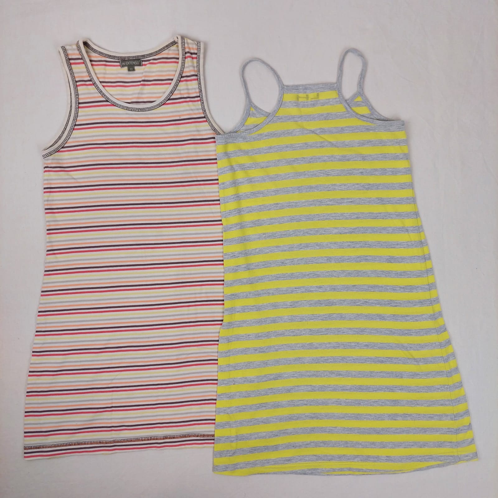 Autres commentaires : Robe La Halle rayé gris et jaune fluo, robe In Extendo beige rayée multicolore