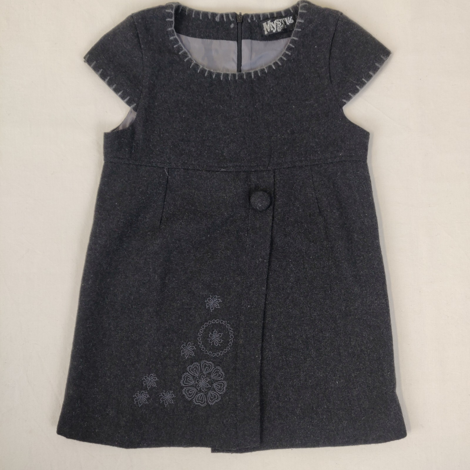 Autres commentaires : Robe noir manches courtes avec col rond et une fermeture en zip au dos.